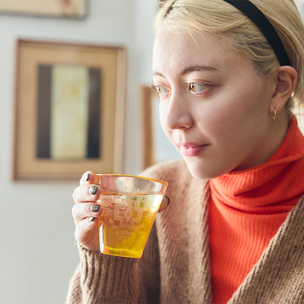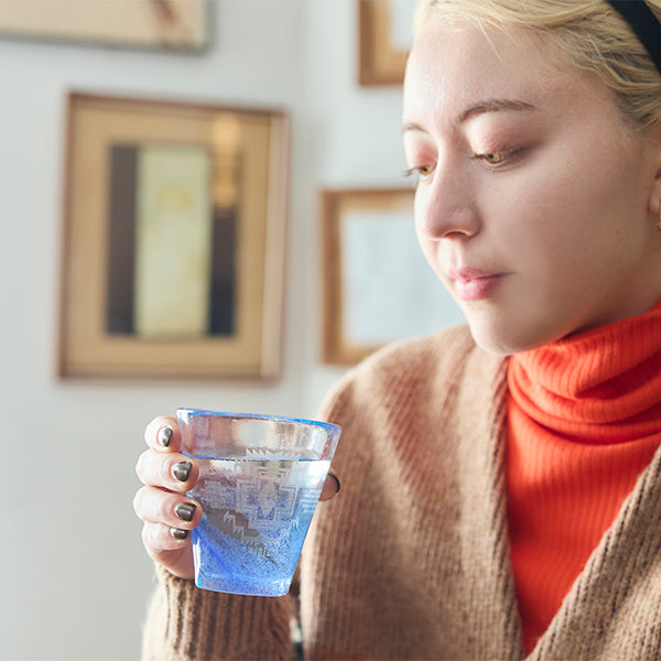 職人の手仕事によってひとつひとつ丁寧に仕上げられ、同じものはふたつとして存在しない—その唯一無二の存在感が、このグラスの魅力です。大量生産では決して出せない“揺らぎ”や“深み”をそのままに、手に取るたび、職人の息づかいまでも感じられるような、静かな温もりが広がります。表面には細かな砂を吹き付けて削る“サンドブラスト加工”を施し、曇りガラスのようなやわらかな質感に。ひんやりとしたガラスの手触りと、控えめながらも確かな個性が、静かに心に響きます。