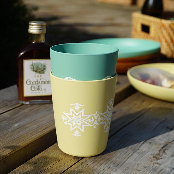 割れや熱、薬品にも強く、耐久性のあるサスティナブルなリサイクル素材を使用した環境に優しいタンブラーで、お家での普段使いはもちろんアウトドアシーンでも安心してお使いいただけます。