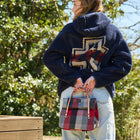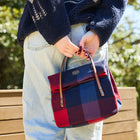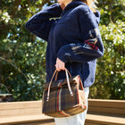 革の細い持ち手とシックなチェック柄の上品なデザインが魅力です。