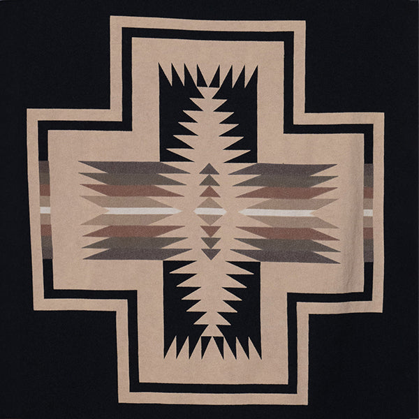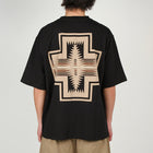 正面には左胸にペンドルトンロゴ、背面にはペンドルトンのネイティブモチーフを大胆にプリントしました。シンプルながらも存在感のあるデザインが魅力です。ベーシックなカラーのボディですが、バックプリントはインパクトがありコーディネートの主役になる1枚です。
