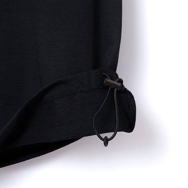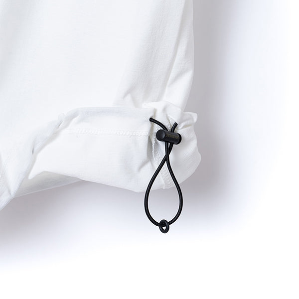 高い吸汗・速乾性を備えた軽量素材を採用し、ドライなタッチの着心地で、暑い季節やアクティブなシーンでも快適に過ごせる機能性の高さが魅力です。裾部分にはドローコードを備えており、絞ることでシルエットに変化を加えられるデザインとなっています。ストレートなシルエットでラフに着こなしたり、裾を絞ってコンパクトなシルエットにしたりと、スタイルに合わせたアレンジが可能です。スポーツやアウトドアシーンにはもちろん、タウンユースにも適した万能な T シャツです。