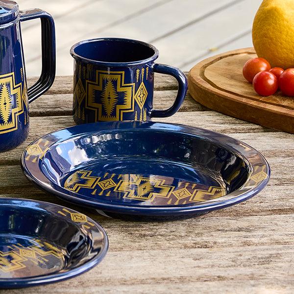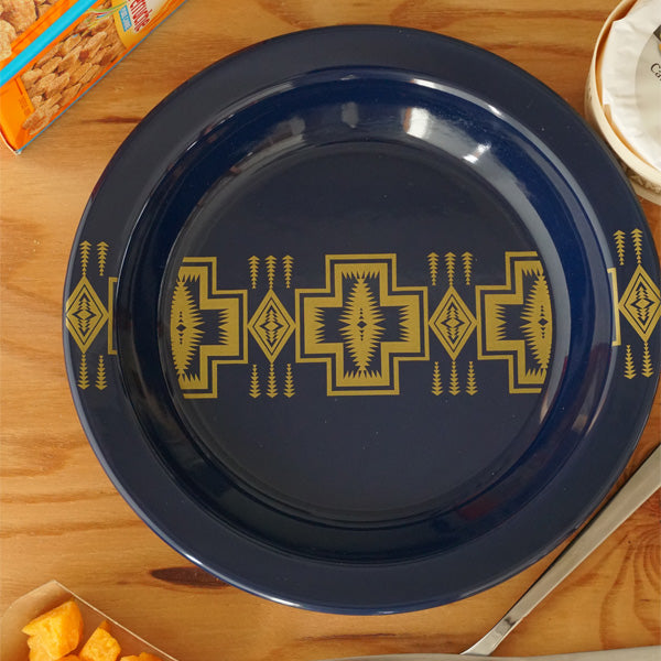 PENDLETON ペンドルトン エナメルプレート23cm FH113 はネイビー×ゴールドの上品な色合いが印象的なペンドルトンパターンを使ったホーロー製のプレートです。