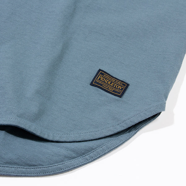 ロールアップされた袖とラウンドテールのデザインが特徴です。正面は無地で胸元のペンドルトンロゴがアクセント。一枚でももちろんインナーとしてもお使いいただけます。