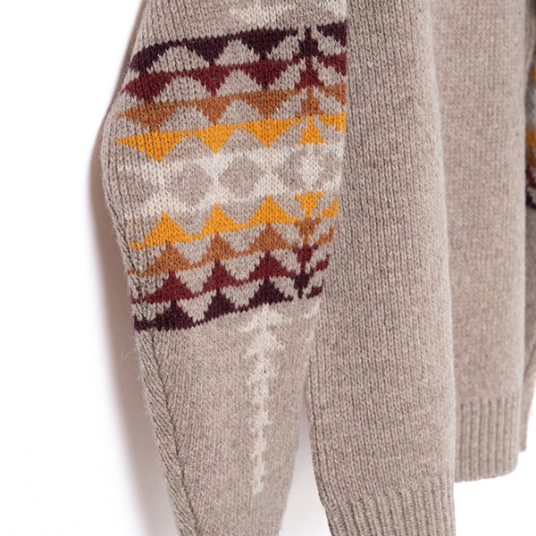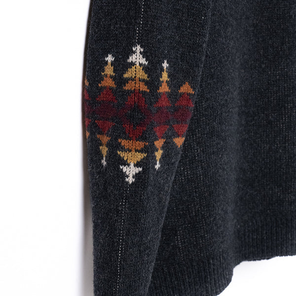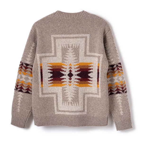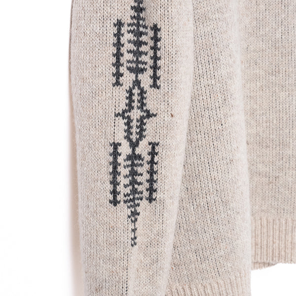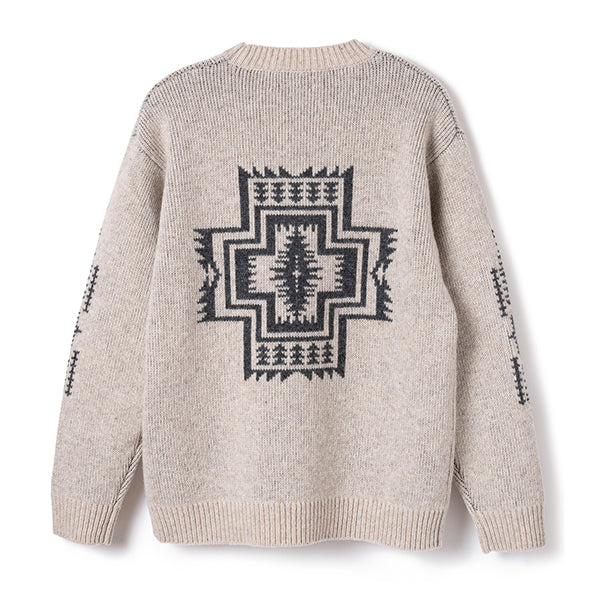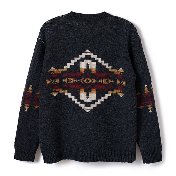 独特の風合いの5ゲージの粗目な編み目とバックの大胆なネイティブ柄で存在感のあるアイテムに仕上がっているので、コーディネートに困ったらとりあえずコレ!なヘビロテアイテムになること間違いなしです。