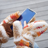軽くて柔らかなボア素材で、内側のスリット部分から指が出せるので手袋を外すことなくスマートフォンを操作することができます。