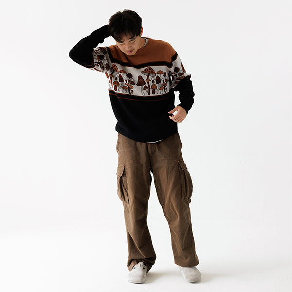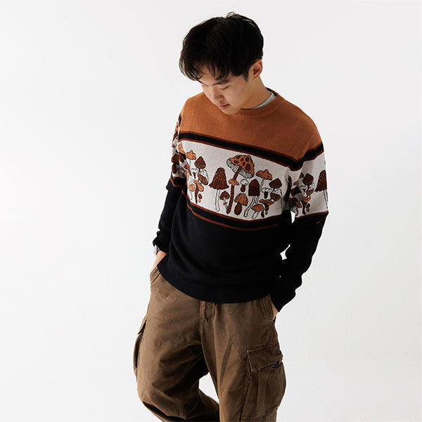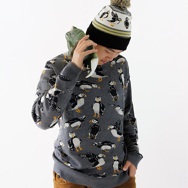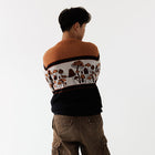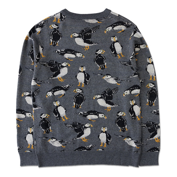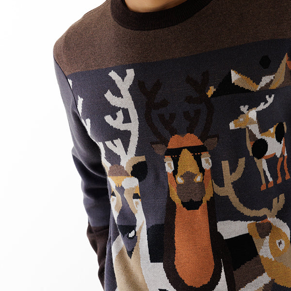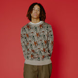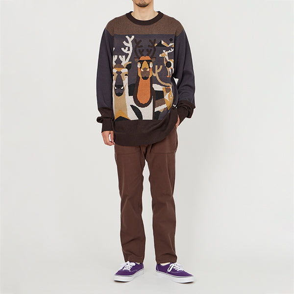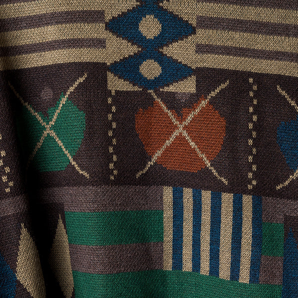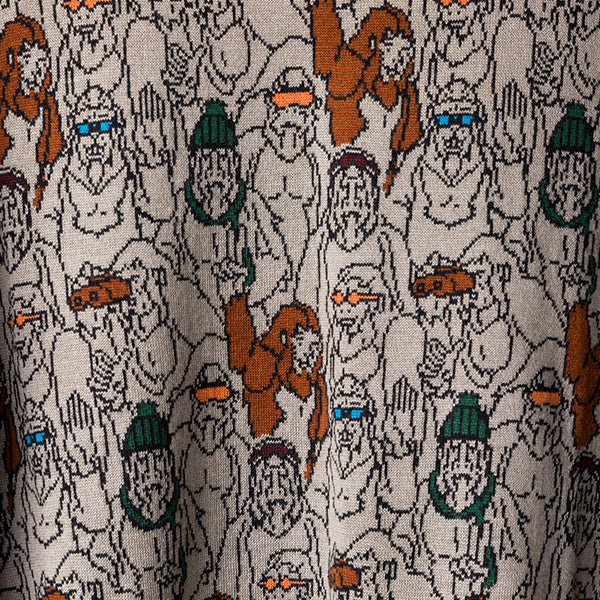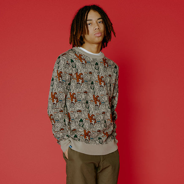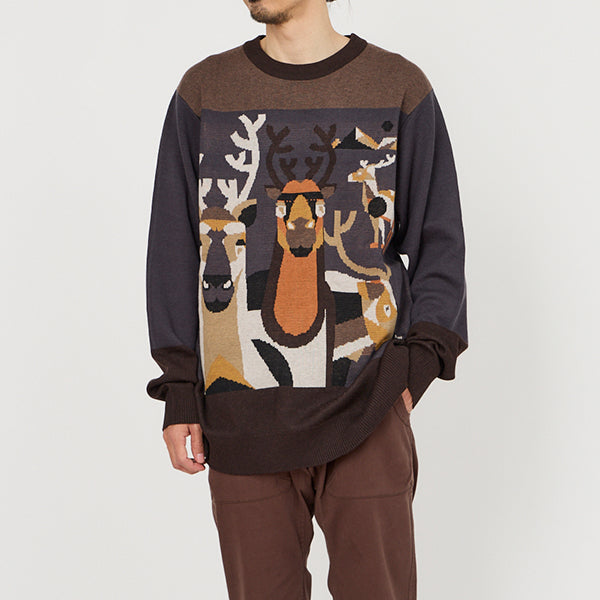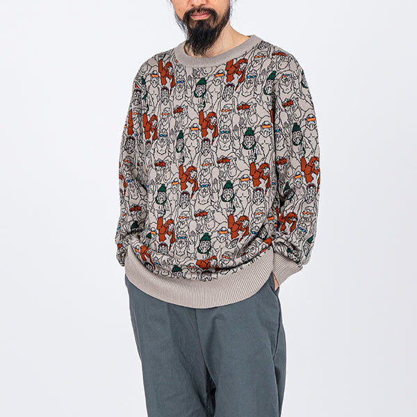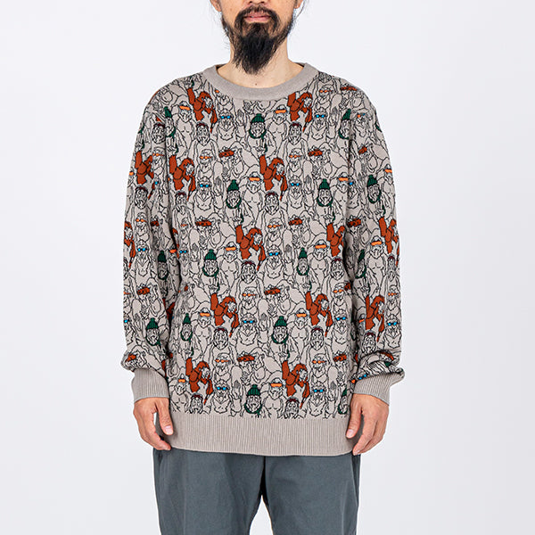 ジャカードニットのクリッター柄で、人ごみの中でも目立つ事間違いないです。ゆったりしたフィット感です。