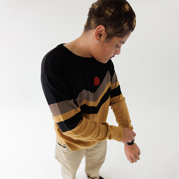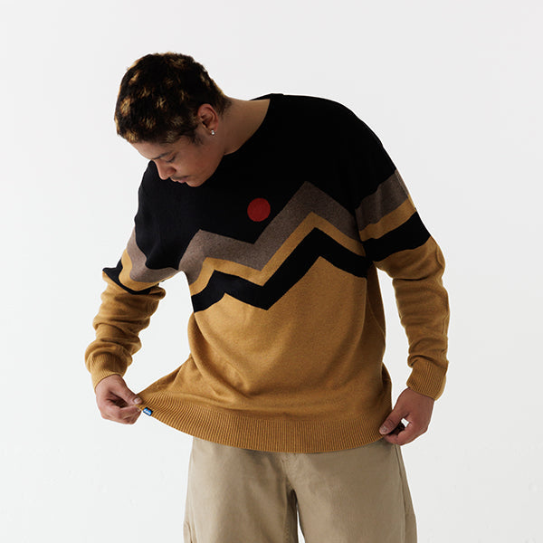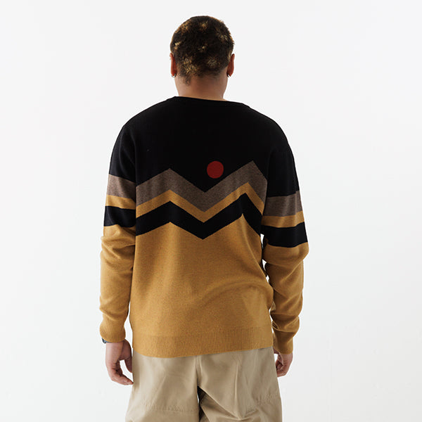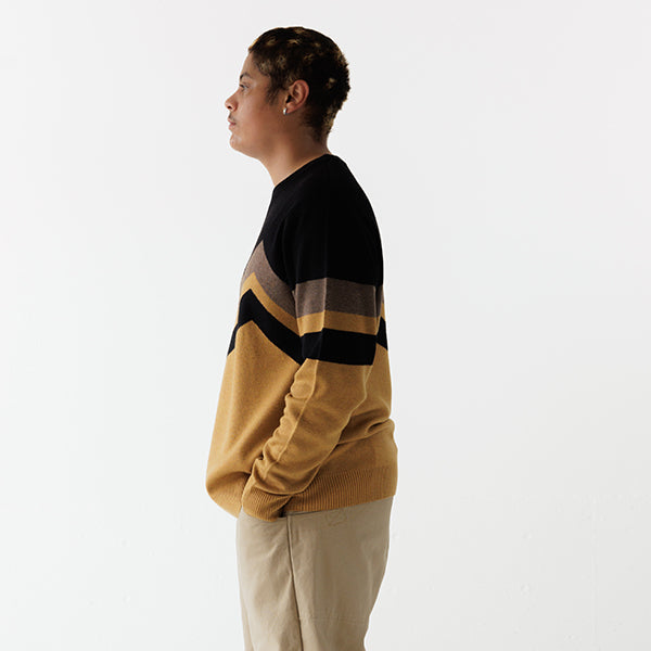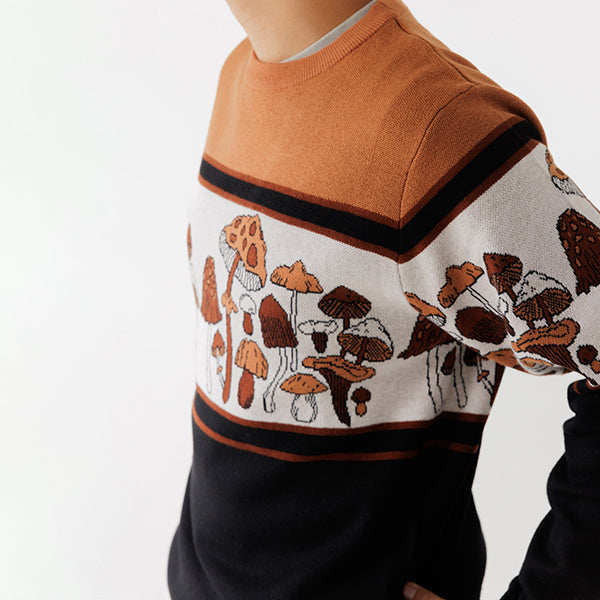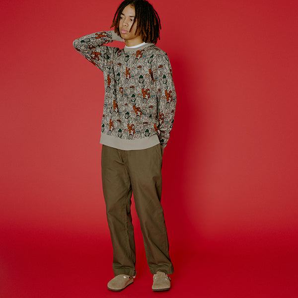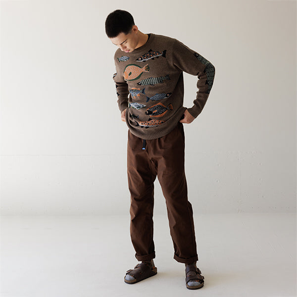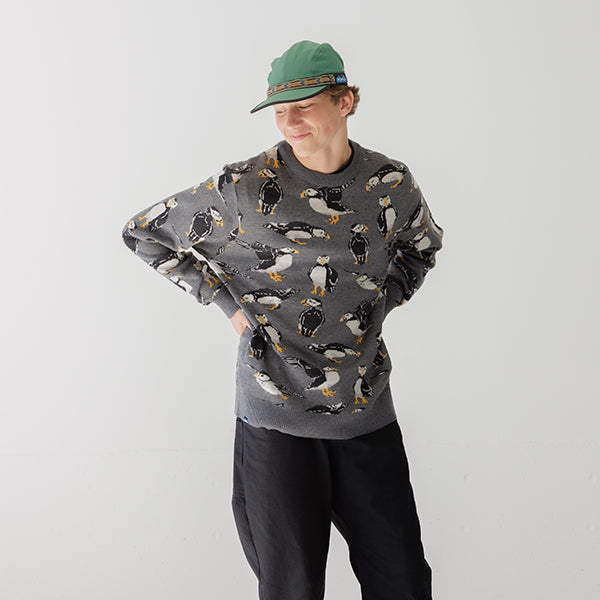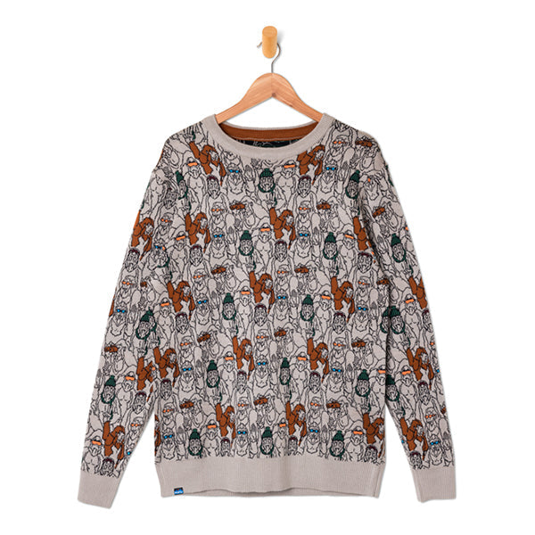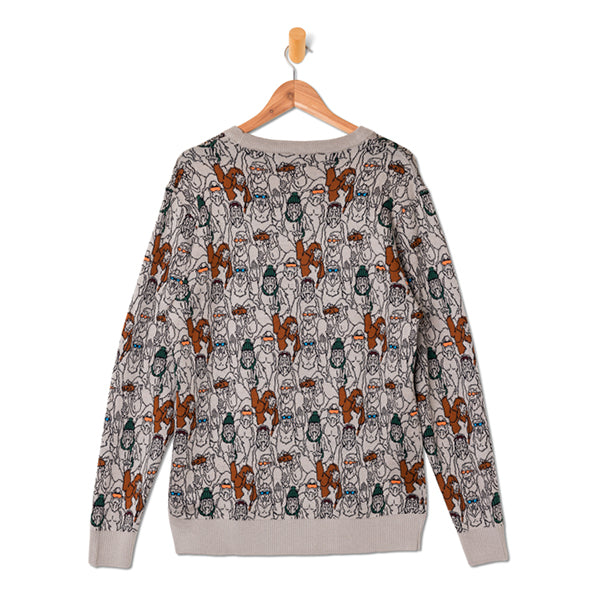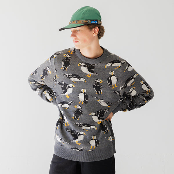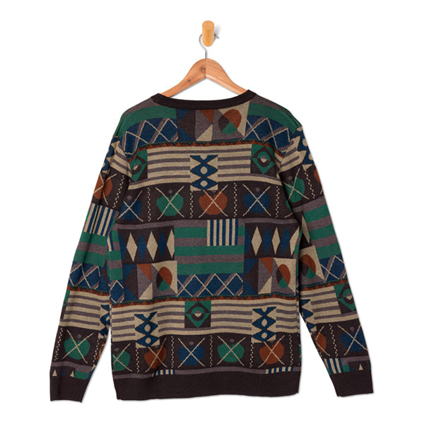 ジャカードニットのクリッター柄で、人ごみの中でも目立つ事間違いないです。ゆったりしたフィット感です。