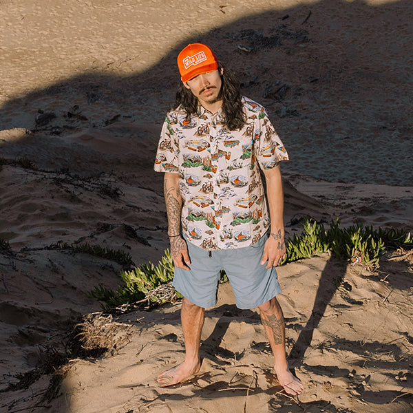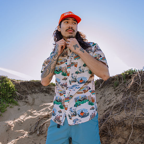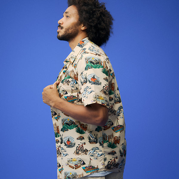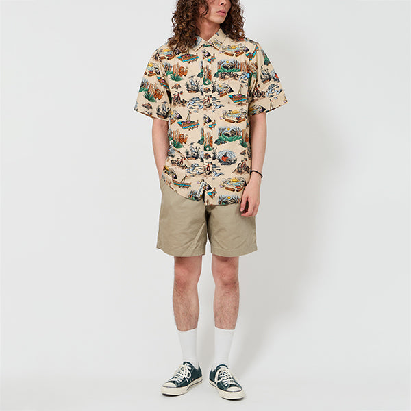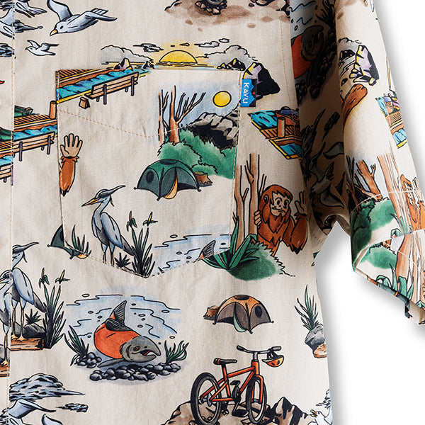 KAVUでは生地のグラフィックを1から手掛けているため、なかなかお見掛けしない個性的な柄のシャツ。ゆったりとした着心地と首袖周りで、ゆったりとした着心地に胸ポケットがアクセント。アメリカンフィット(US規格のサイズ)ですのでサイズ選びの参考にしてみてください。コットン素材が肌触りがよく、タウンでもアウトドアでも映える、ヘビロテ間違いなしの1枚です。