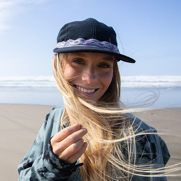 ブランドのアイコンともいえるストラップキャプを柔らかなソフトフリースに。後ろ側でサイズ調整が可能で、普段はゆったりと被ることができ、風の強いシーンではタイトに締めて、飛んでしまうことを防ぎます。ウェビングテープがアクセントになっています。
