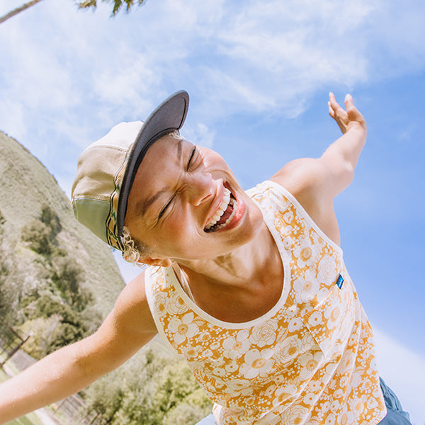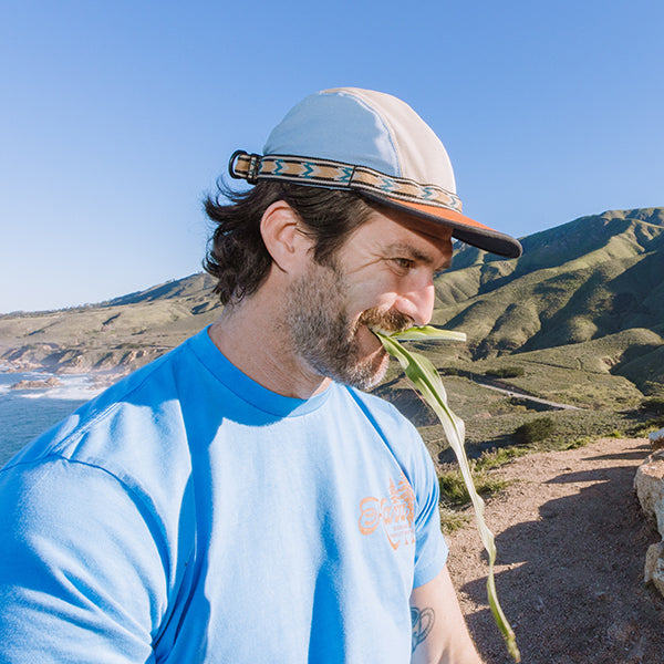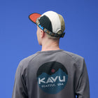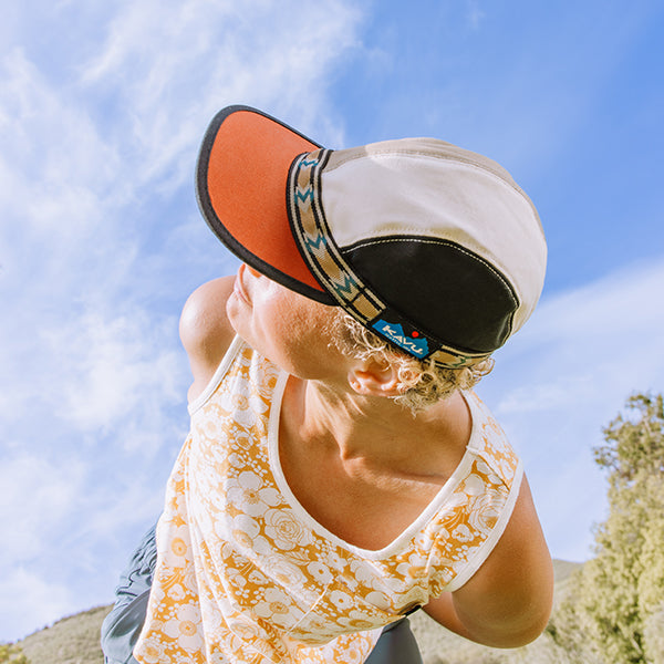 縁に付いたアジャスタブルウェビングテープによりサイズ調節ができ、このウェイビングシステムにより、強風でも脱げにくくなっています。また、ツバの裏側は黒一色で統一され、水面からの日光の照り返しを防ぐという工夫もしています。サスティナブルに配慮したウェアづくりに取り組むKAVUらしく、こちらのキャップでは100%オーガニックコットンを使用しています。このキャップを選んだ日は、いつもの毎日のようで少し違う少し遊び心のある1日になるかもしれません!