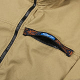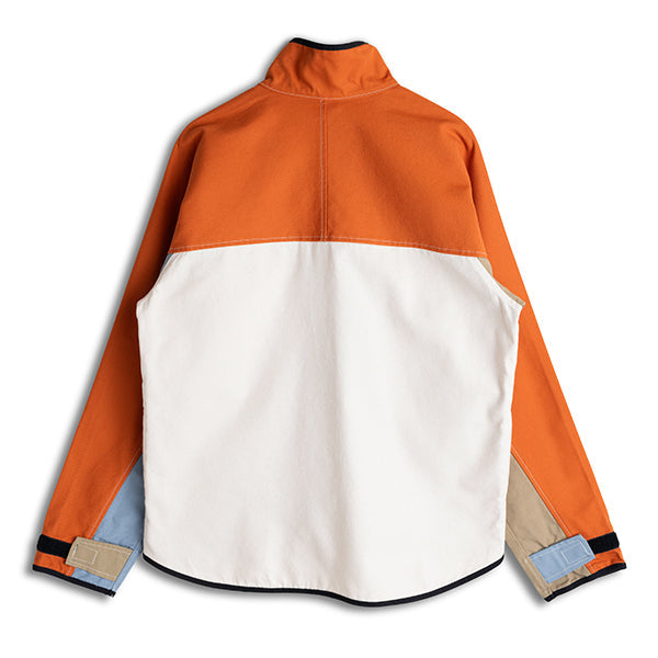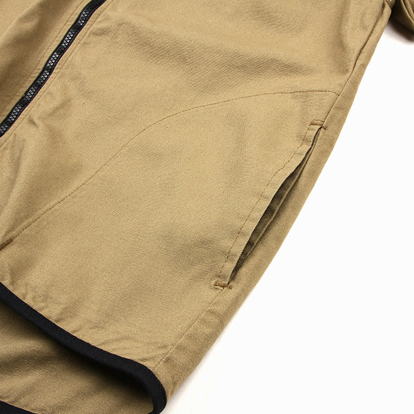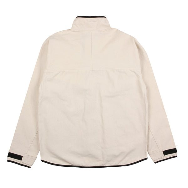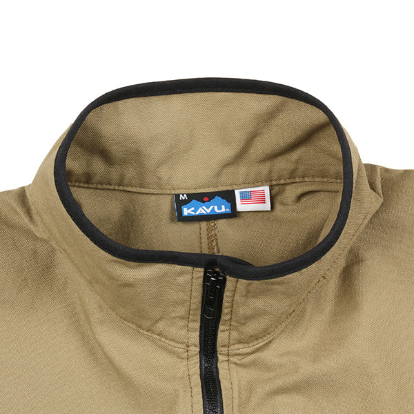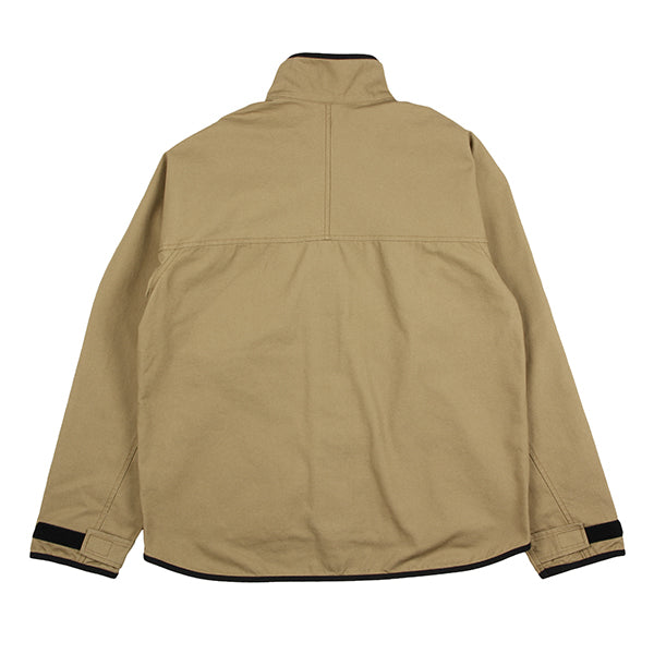 厚手のオーガニックコットン生地なので、キャンプサイトでも、肌寒い季節のアウターにもピッタリです。ラグランスリーブ仕様で着用した際に腕の稼働領域が広く肩回りの動きもスムーズな着用感です。胸にはウェイビングフラップジップ付きポケット、両サイドにはハンドポケットが付いています。袖口はベルクロで調整できる仕様で冷気の侵入を防ぎます。フード付きウェアとのコーディネートがおすすめです。また、厚手のオーガニックコットン生地で、キャンプでの焚火番にも最適です。コットン素材が肌触りがよく、お手入れも簡単で、使えば使うほどユーズド感が出る愛着がわく1枚です。