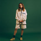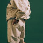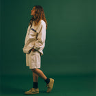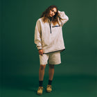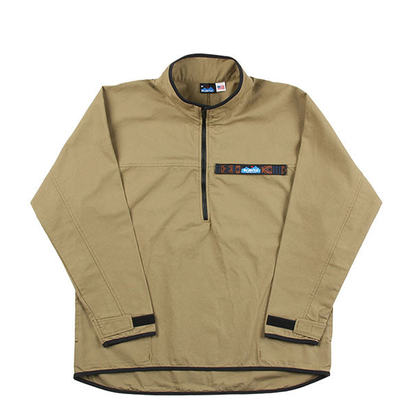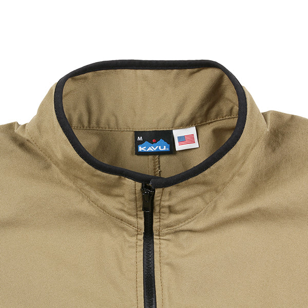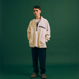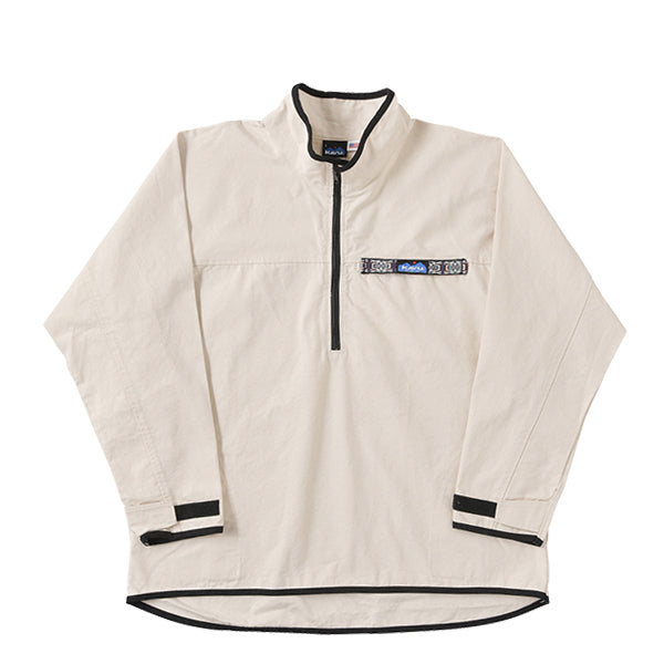 通常のハーフジップ スローシャツよりも身幅部分にゆとりを持たせて、脱ぎ着がしやすい仕様になっています。厚手のオーガニックコットン生地なので、キャンプサイトでも、肌寒い季節のアウターにもピッタリです。ラグランスリーブ仕様で着用した際に腕の稼働領域が広く肩回りの動きもスムーズな着用感です。胸にはウェイビングフラップジップ付きポケット、両サイドにはハンドポケットが付いています。袖口はベルクロで調整できる仕様で冷気の侵入を防ぎます。フード付きウェアとのコーディネートがおすすめです。また、厚手のオーガニックコットン生地で、キャンプでの焚火番にも最適です。コットン素材が肌触りがよく、お手入れも簡単で、使えば使うほどユーズド感が出る愛着がわく1枚です。