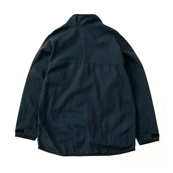 通常のハーフジップ スローシャツよりも身幅部分にゆとりを持たせて、脱ぎ着がしやすい仕様になっています。厚手のオーガニックコットン生地なので、キャンプサイトでも、肌寒い季節のアウターにもピッタリです。ラグランスリーブ仕様で着用した際に腕の稼働領域が広く肩回りの動きもスムーズな着用感です。胸にはウェイビングフラップジップ付きポケット、両サイドにはハンドポケットが付いています。袖口はベルクロで調整できる仕様で冷気の侵入を防ぎます。フード付きウェアとのコーディネートがおすすめです。また、厚手のオーガニックコットン生地で、キャンプでの焚火番にも最適です。コットン素材が肌触りがよく、お手入れも簡単で、使えば使うほどユーズド感が出る愛着がわく1枚です。