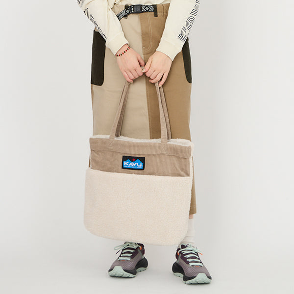 KAVU カブー トートイットオールはKAVUらしさ満載でブランドを象徴する2つの毛足の長いシェルパフリースと、レトロな雰囲気のコーデュロイを組み合わせたトートバッグです。