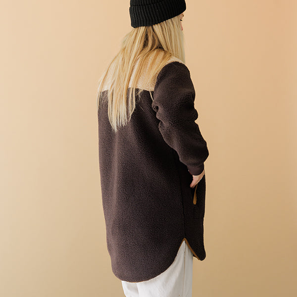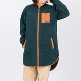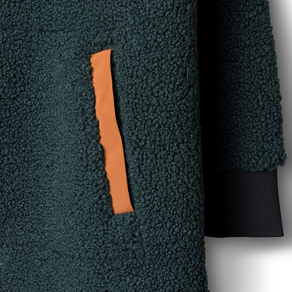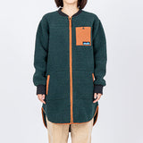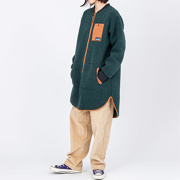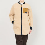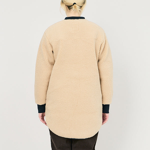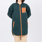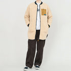 トレンドの首元っすっきりのノーカラージャケットを、リサイクルポリエステルでお届けします。ロング丈でおしりと太ももが隠れるので寒い冬でも保温性の高い1枚。ロングブーツと合わせてすっきりとコーディネートしたり、首元に柄物のストールを巻いてヴォリュームを出してもステキです。トリムや袖口のリブが少しレトロでかわいいロングコートです。