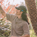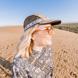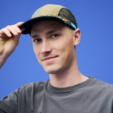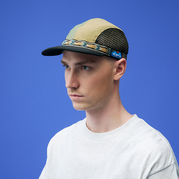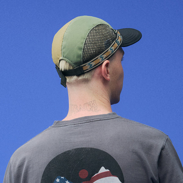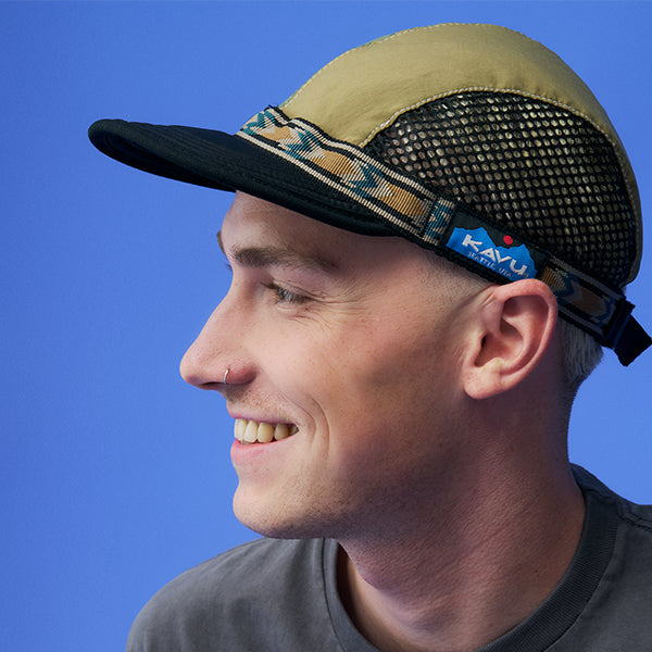 サイド部分にはメッシュ素材を使用しているので通気性抜群でちょっとしたアクティビティからデイリーユースでも活躍します。また、縁に付いたアジャスタブルウェビングテープによりサイズ調節ができ、このウェイビングシステムにより強風でもしっかりフィットさせて、脱げにくくできます。ツバの裏側部分は黒一色で統一され、水面からの日光の照り返しを防いでくれます。