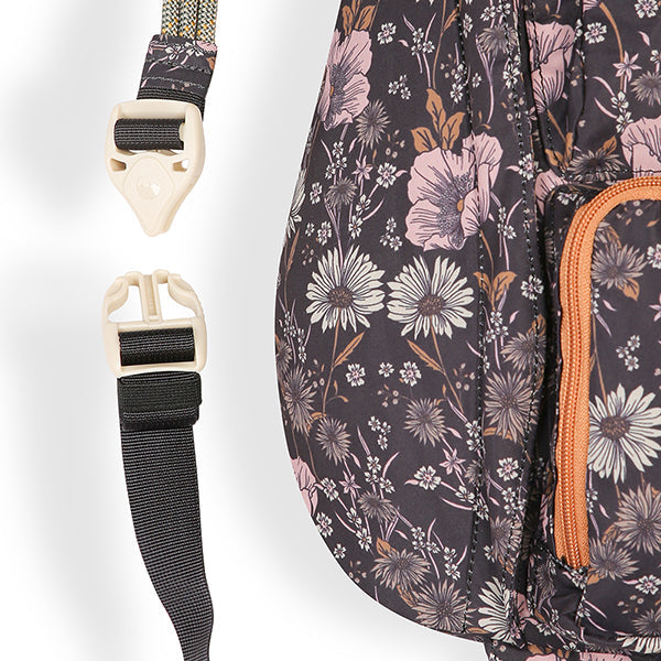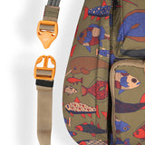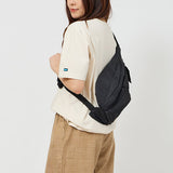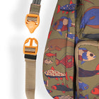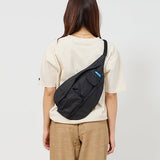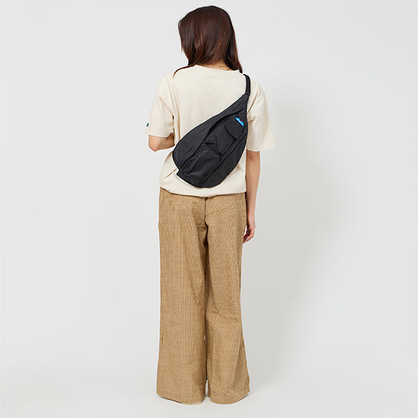 表面素材は耐久性と耐水性に優れた600デニールのポリエステル生地を採用しています。また、ショルダーストラップにはKAVUらしいデザインのロープ素材が3本使用されており、長さ調節も可能です。正面にはポケットが3個付いており、携帯電話や鍵、ドリンクボトルなどを収納することができます。