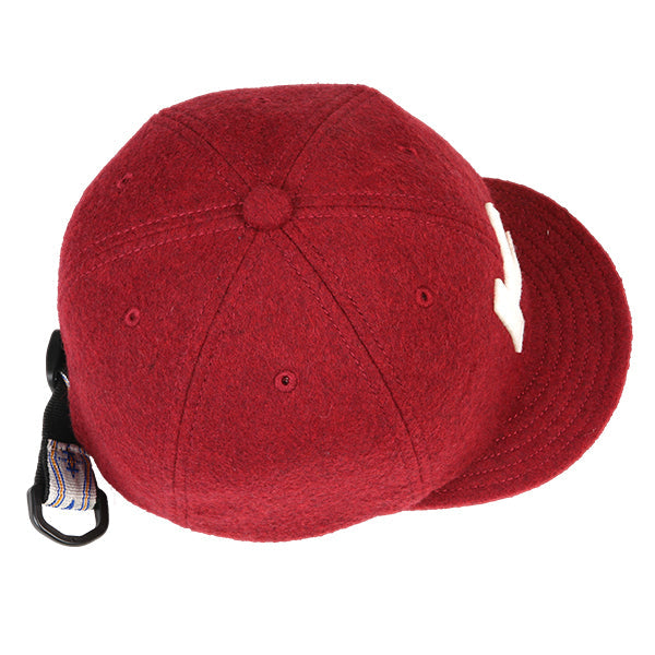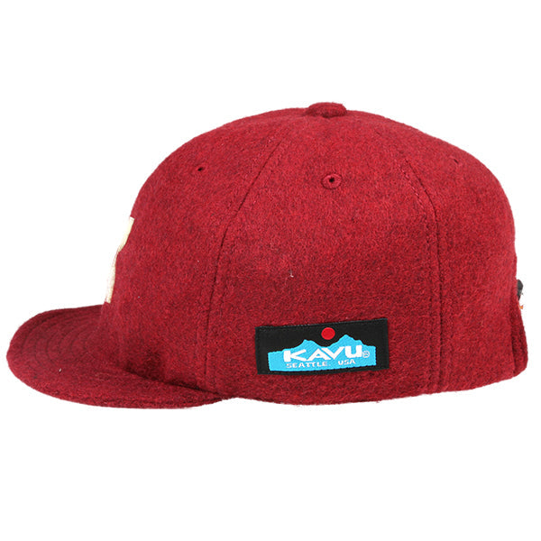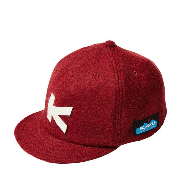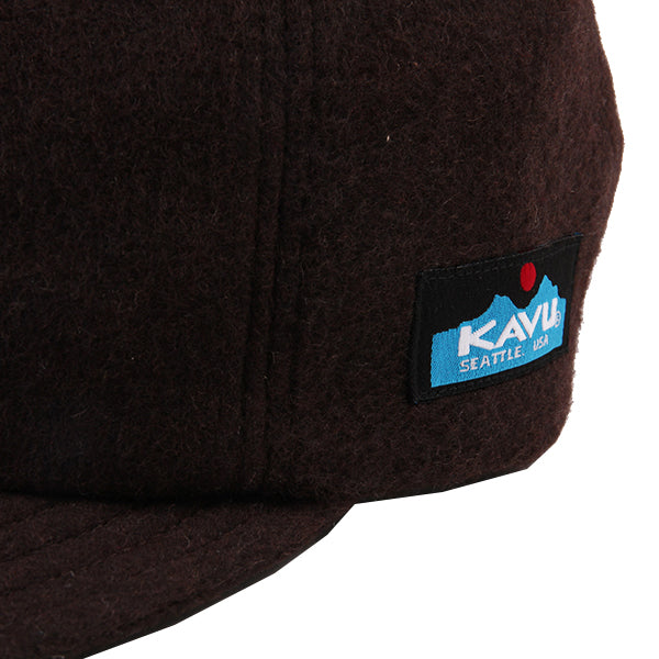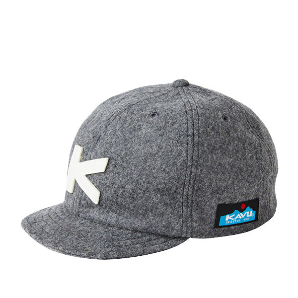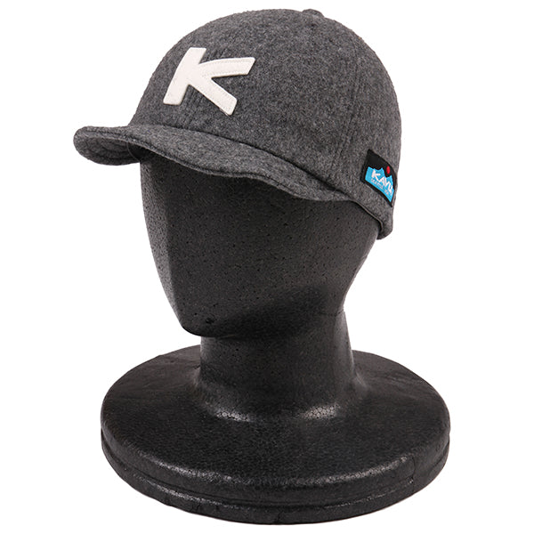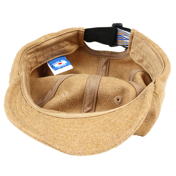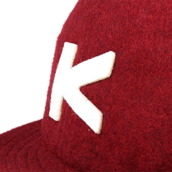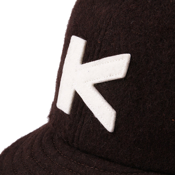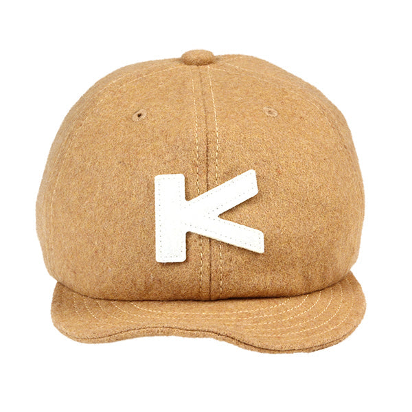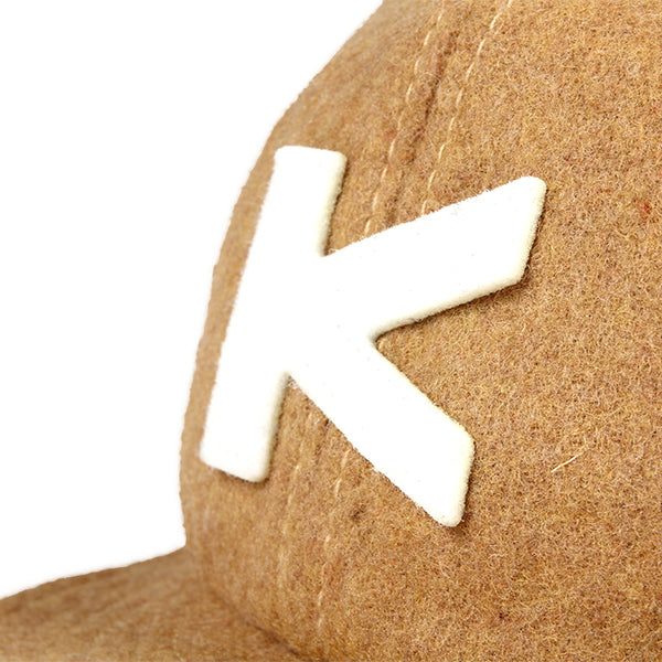 KAVUのKのワッペンがよりベースボールらしさを醸し出しています。サイズ調節はKAVUのウェイビングベルトを使用して調節が可能。つばは短いですが形が付けやすく様々なスタイルに合わせることも可能です。サイズ感として浅くタイト目な作りです。冬らしいウール素材です。