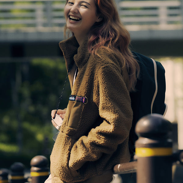 程よい厚みのフリースを使用していますので暖かく、秋冬に着まわしやすい絶妙のサイズ感でKAVUのロングセラーアイテムです。あたりの出やすい袖口やボトム部分はコットンパイピングで補強しており、デザインのアクセントになっています。裏地は肌さわりの良い細かいフリース、外側は発色と保温性の高い起毛フリースを採用して独自のデザインを持つフリースに仕上がっています。