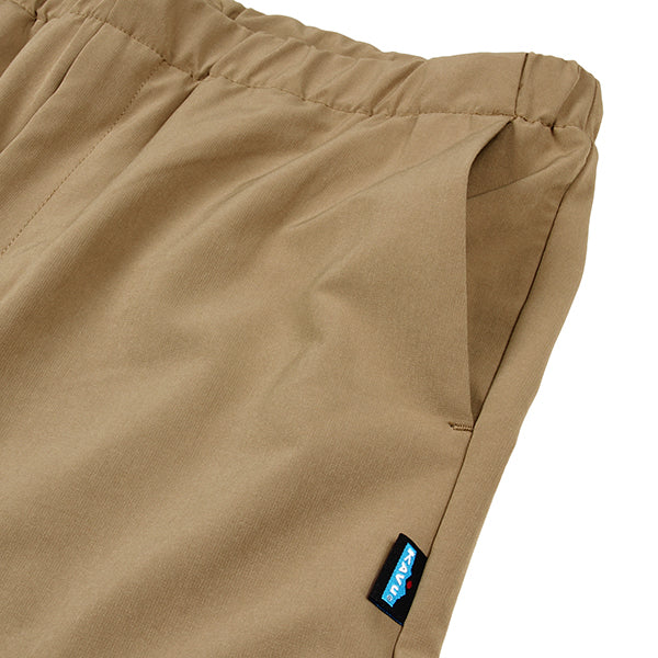 「太陽と遊ぶ」というコンセプトの元、開発された素材SHELTECH(シェルテック)を使用したフルレングスのパンツです。SHELTECH(シェルテック)は遮熱、接触冷感、吸水速乾、軽量、紫外線防止という5つの機能全てを備えた素材です。KAVUの遊び心はそのままに、ハイキング、SUP、コンクリートジャングルに乗り込んでいきましょう!薄手で、軽量で、春先から夏の暑い時期まで爽快に履くことができる、リラックス感満載の1枚です。