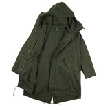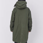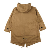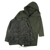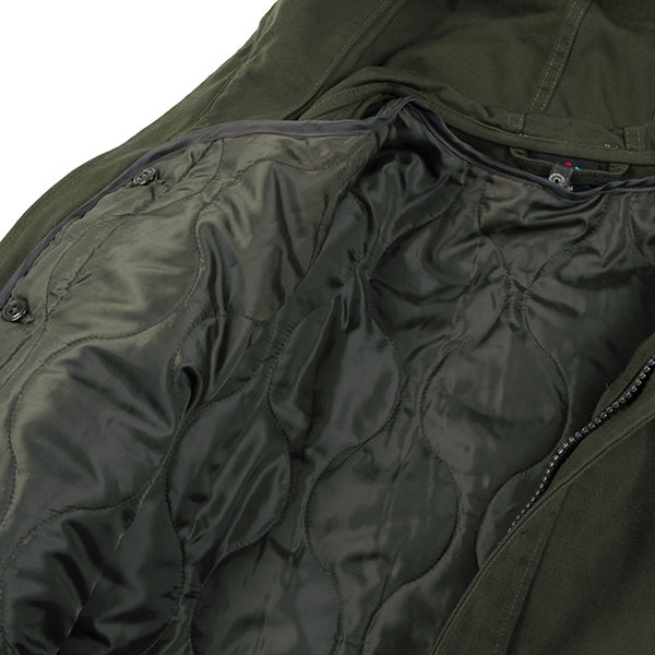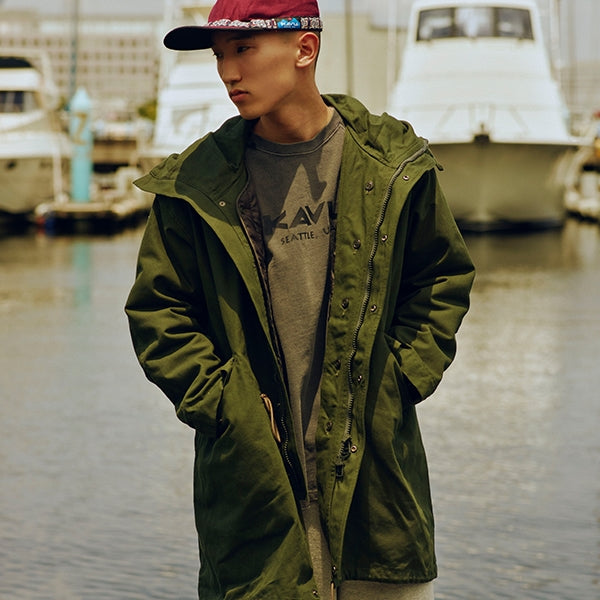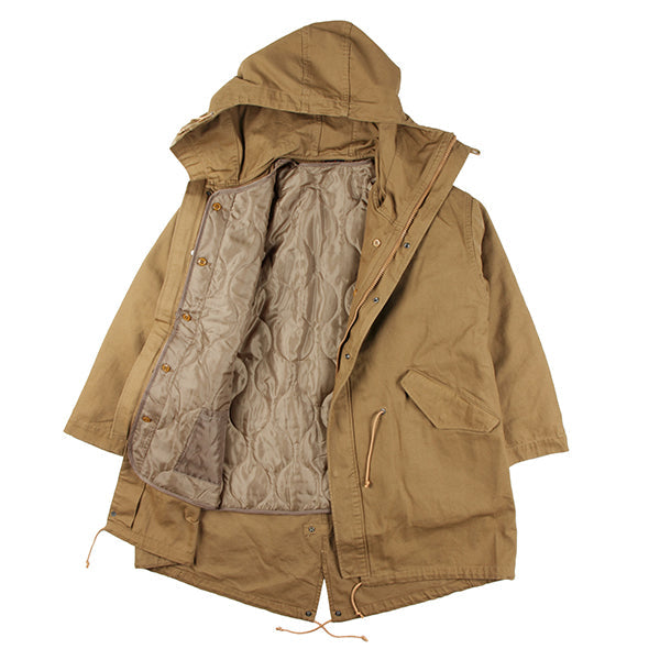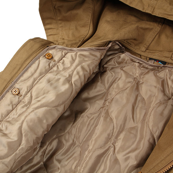 ミリタリージャケットとしても有名なM65からインスパイアされたジャケットです。KAVUファンからのフード付きが欲しい!との声にお応えして、この冬、フーディーが登場です。ポリエステル製のライナーは取り外して気温に合わせて暖かさを調整ができます。ライナー、アウター単体でもそれぞれ着用でき、1枚で3WAYで使えるうれしいアイテム。丈感が少し長めなので秋口はもちろんのこと、寒い冬でも暖かく着ていただけます。本商品はジャパンフィットで日本サイズでデザインした商品です、サイズ選びの参考にしてください。コットン製ですので、焚火を愛するあなたに、さりげなく着ていただきたいお勧めの1着です。腰、裾部分はドローコードで絞ることができます。