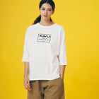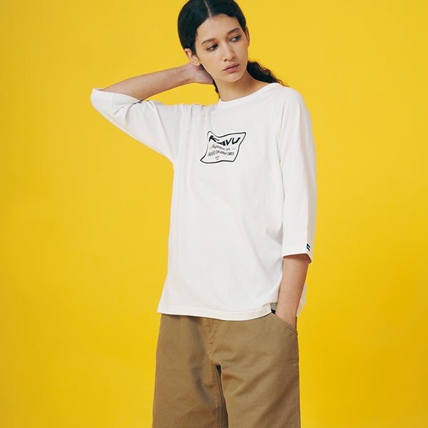 五分袖が1枚あると、コーディネートの幅がぐっと広がります。少しゆったりとしたサイズを選んでそのまま着ることはもちろん、カラーTeeにレイヤリングしても袖部分から必ずのぞくので組み合わせを気にする必要がありません。単調になりがちなTシャツの着こなしにちょっとアソビゴコロを加えてくれます。フロントにスクエアタイプのロゴをプリントしました。USAコットンを使用したボティで例年のエンジニアードベースボールTEEより少しオーバーサイズです。リピート購入の方はサイズチャートをサイズ選びの参考にしてみてください。