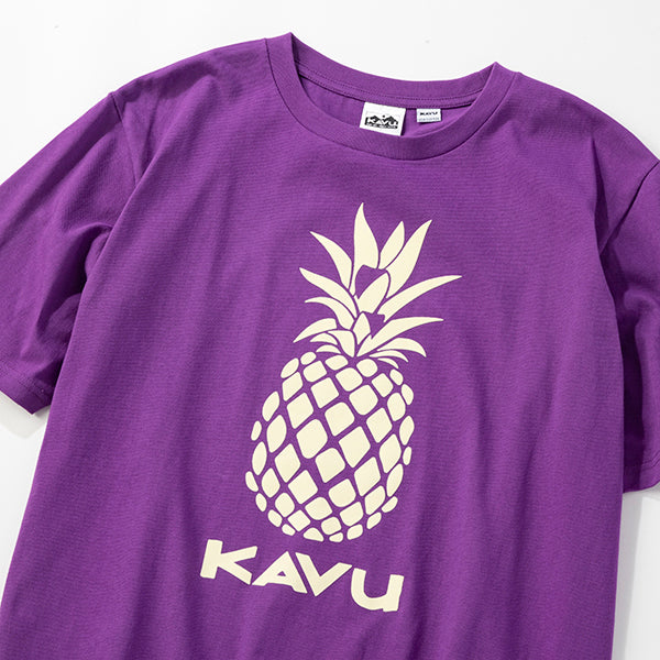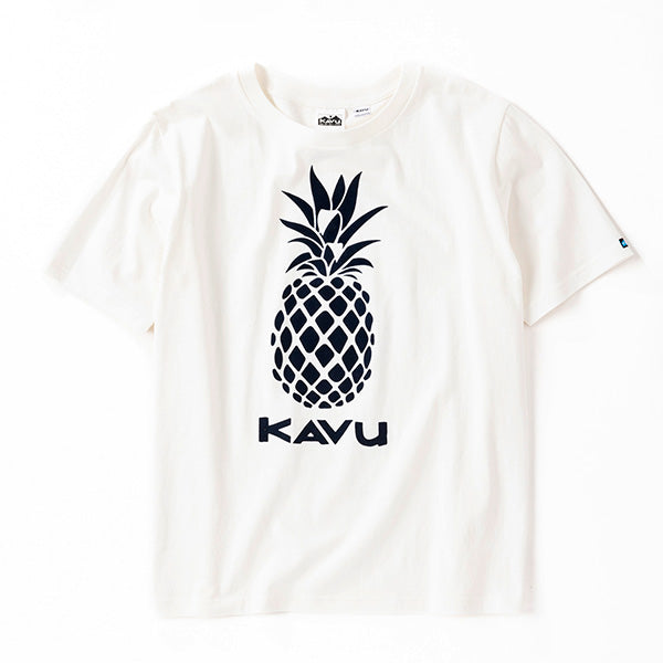 フロントにパイナップルがプリントされたTシャツにはベロア調のフロッキープリントを採用して、少しもこもこで立体的なプリントになっています。南国をイメージさせるパイナップルとKAVUロゴが大きくプリントされていて、フツーのTシャツじゃ物足りない、そんなあなたに着ていただきたい、ロングセラーアイテムです!USAコットンを使用したボティで例年のパイナップルTEEより少しオーバーサイズです。リピート購入の方はサイズチャートをサイズ選びの参考にしてみてください。