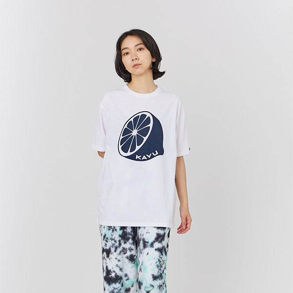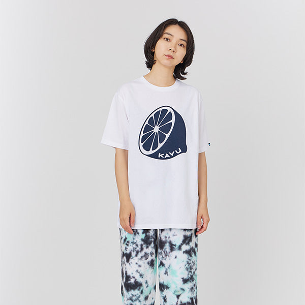 フロントにレモンがプリントされたTシャツにはベロア調のフロッキープリントを採用して、少しもこもこで立体的なプリントになっています。半分にカットしたレモンの中にKAVUロゴがさりげなくプリントされていて、フツーのTシャツじゃ物足りない、そんなあなたに着ていただきたい、ロングセラーアイテムです!USAコットンを使用したボティで例年のレモンTEEより少しオーバーサイズです。リピート購入の方はサイズチャートをサイズ選びの参考にしてみてください。