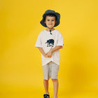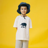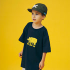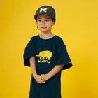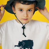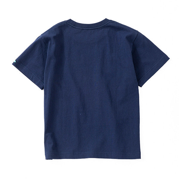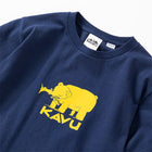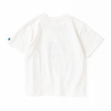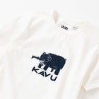 KAVUキッズのために、オトナとおそろいのTEEをご用意しました。おそろいを着て、さてどこに出掛けましょう!フロントにアップルがプリントされたTシャツにはベロア調のフロッキープリントを採用して、少しもこもこで立体的なプリントになっています。