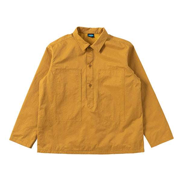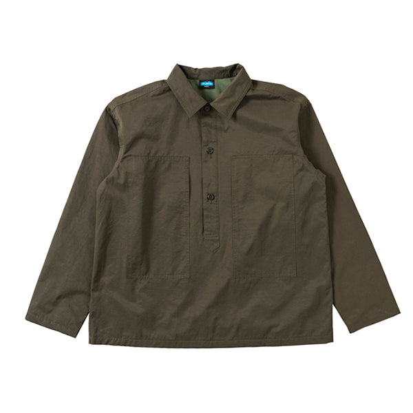 シンプルなプルオーバー(被り)と襟が細めのデザインは、服好きにはほおって置けないスタイル。フロントの縦に長いポケットはデザイン性もありつつ、中心から手を入れて使うので防犯上も安心な仕様なんです。街づかいはもちろん、キャンプや、作業時のお気に入りのウェアとしても、ちょっとオーバーサイズで着こなすのがおススメです。