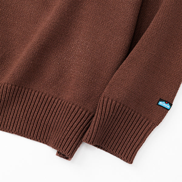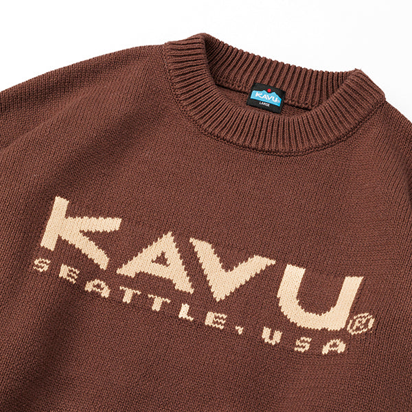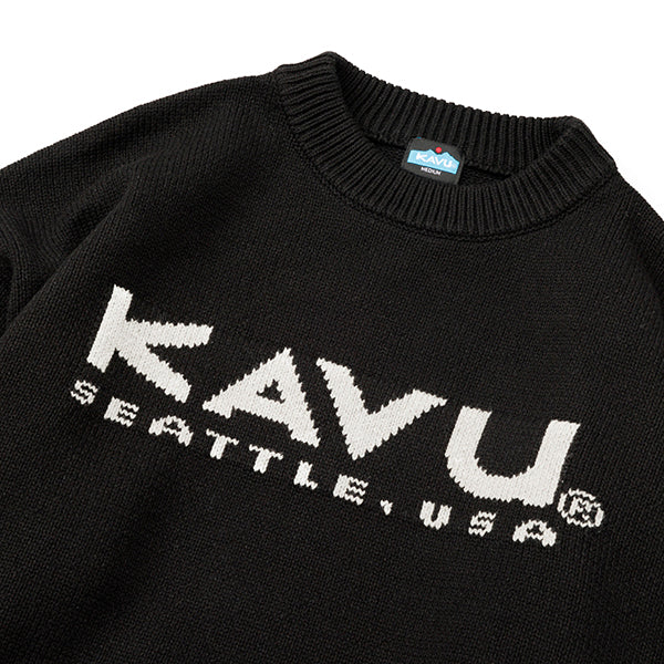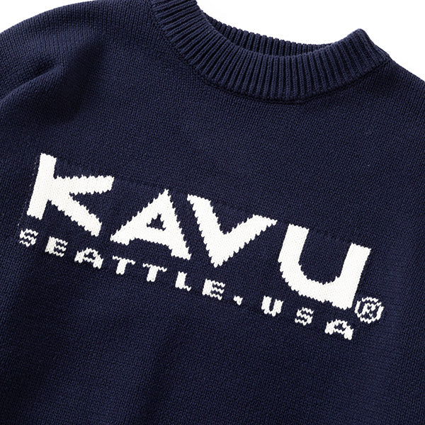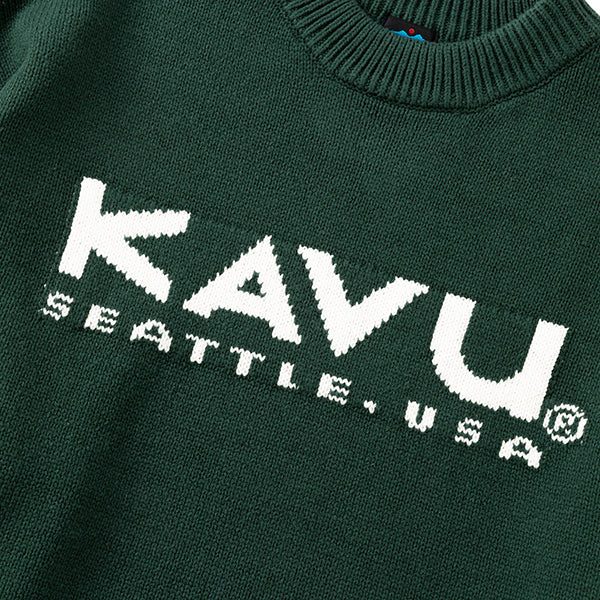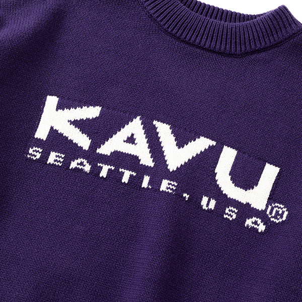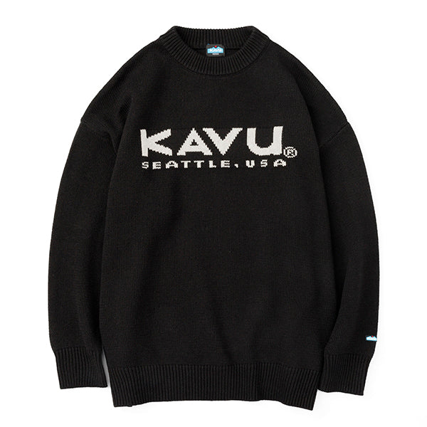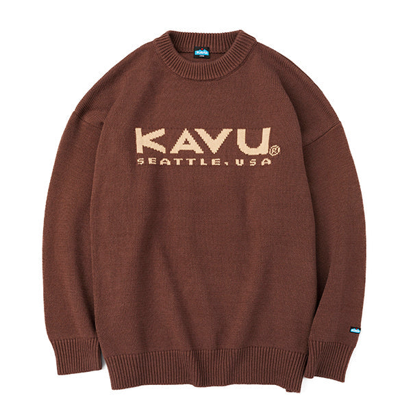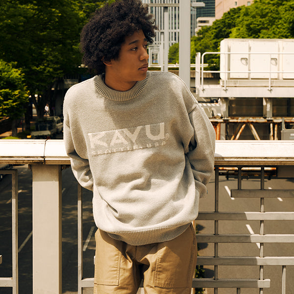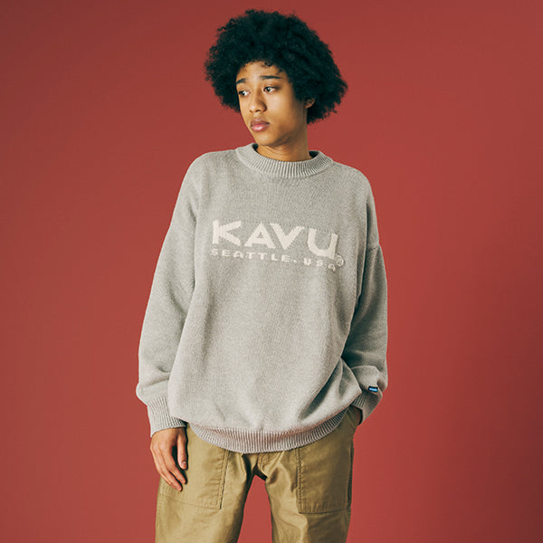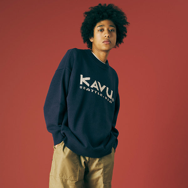 シンプルなシルエットのニットは秋冬に大活躍するアイテム。 デニムに、コーデュロイのパンツに合わせてもこれから長く愛用頂ける1枚!中にシャツを合わせて襟を出してもいいですね。キャップやビー二―に合わせてカジュアルに着こなしたり、スラックスパンツのような落ち着いたアイテムと合わせて、ちょっと崩したコーディネートも楽しめます。定番のレターロゴを冬アイテムのニットに落とし込み、1年中KAVUを楽しんでいただけるようにしました。