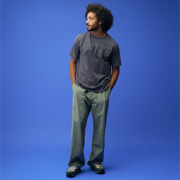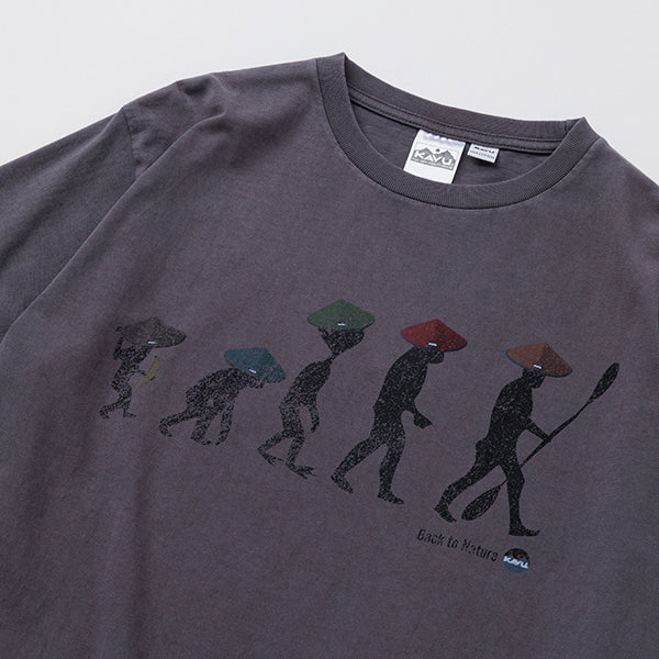 フロントにはKAVUの代表作、チルバを被った人類の進化図のシルエットがデザインされています。自然にかえる。あなたにとってバックトゥネイチャーとはどんな意味でしょうか?