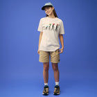 プリントの版を最初からひび割れた版で作成し、特殊なブリーチ加工を施して、まるで古着のようなヴィンテージ感あふれる味わい深い仕上がりになっています。