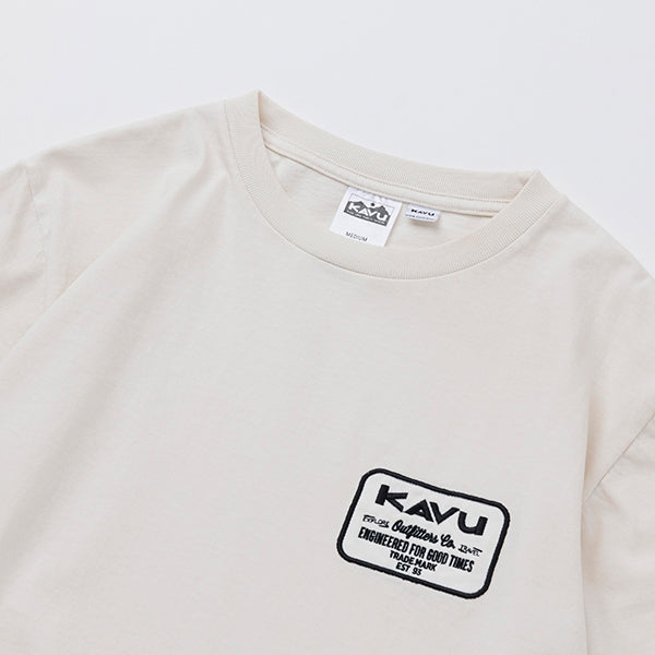 胸元のさりげないKAVUのエンジニアードロゴパッチが印象的な一枚。シンプルでありながら、KAVUのアクティブでスタイリッシュなイメージをしっかりと伝えるデザインです。