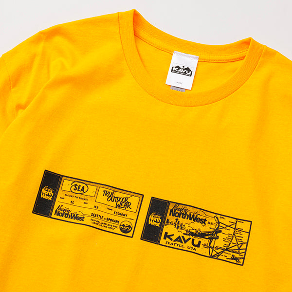 ハンドプリントシリーズのこのTシャツは、USAから取り寄せたインクを使って国内で1点1点手刷りで作成されています。前面には雄大な自然と多様な文化が息づくパシフィックノースウエスト行きのエアチケット、背面にはあなたを乗せて大空を飛ぶ飛行機がデザインされています。ワクワクするようなこの一枚で大冒険に出かけましょう!