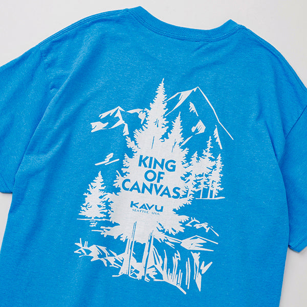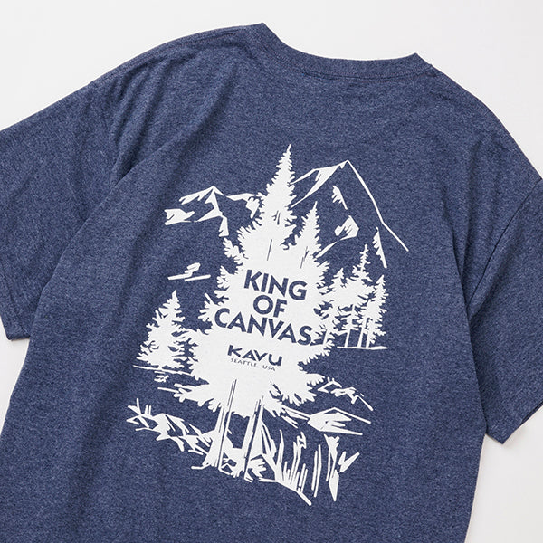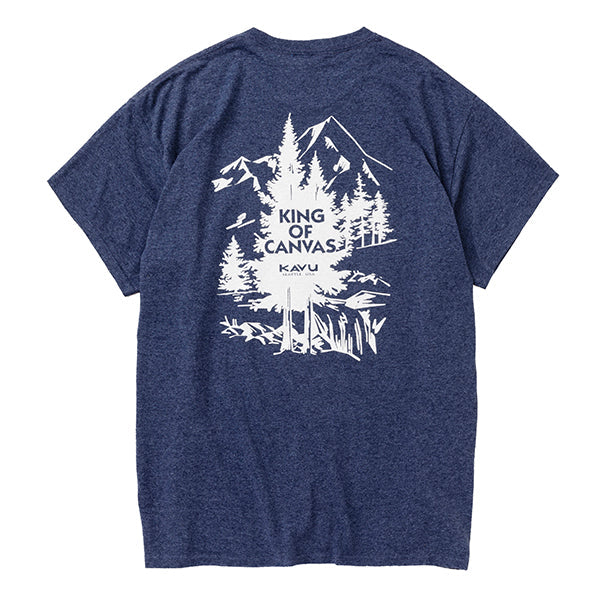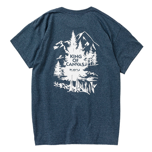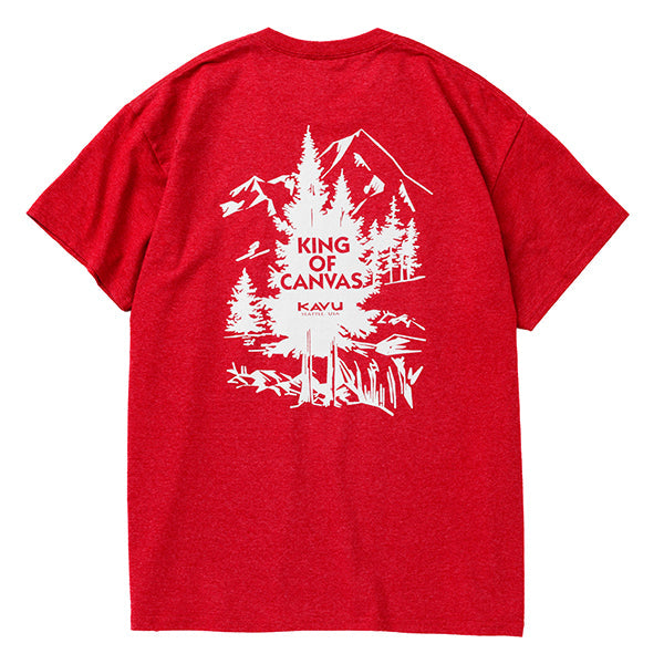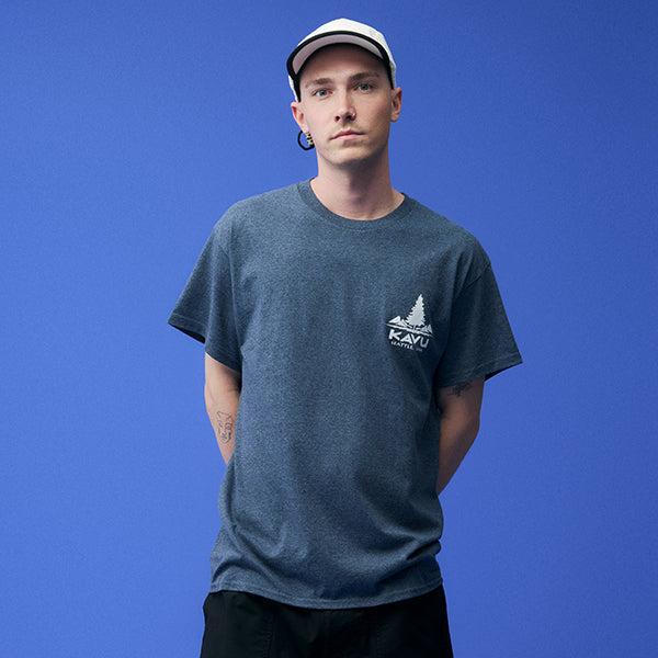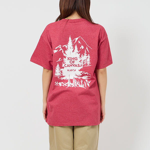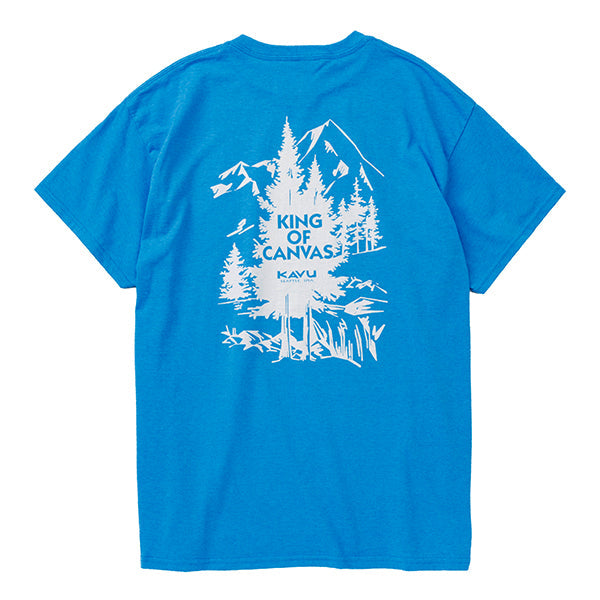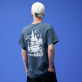 針葉樹が描かれたツリーTEE。まるでアメリカのナショナルパークでちょっとトレイルを散歩しているような、山と、樹木。森まで行けない、そんな日でもひそかに森林浴を想像してリラックスできる。自然を愛するあなたにぴったりの、1枚です。