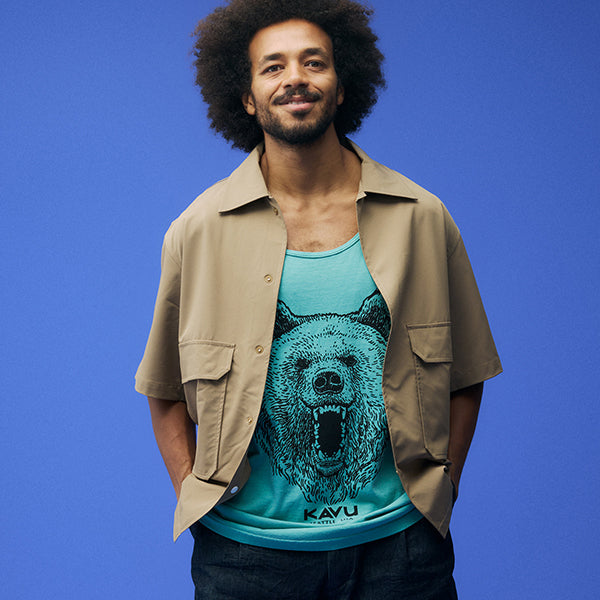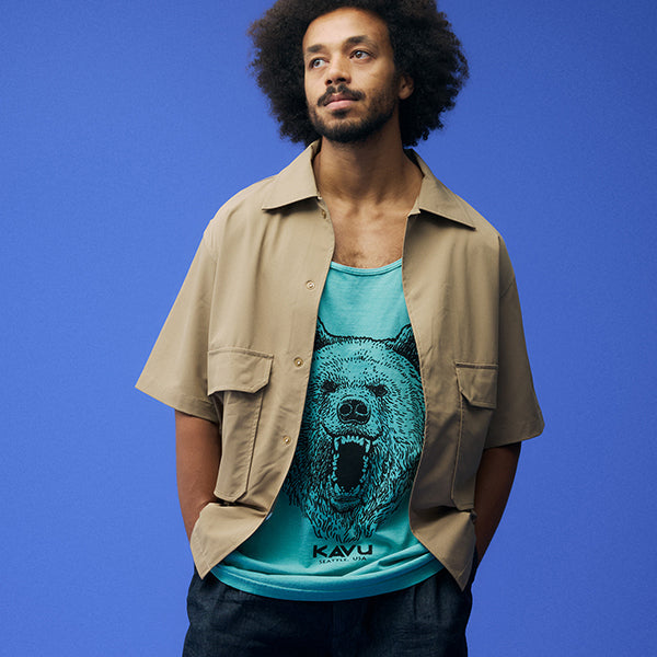 KAVU カブー メンズ ベアタンクトップ は迫力のあるクマがプリントされたタンクトップです。