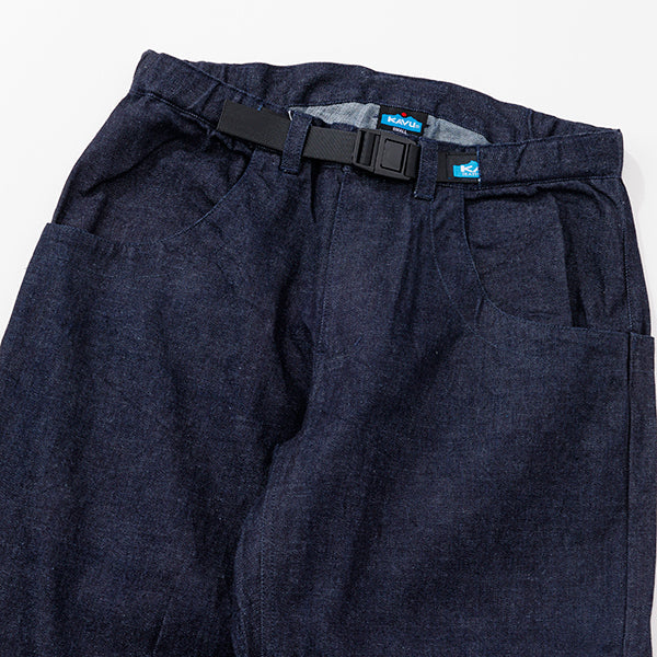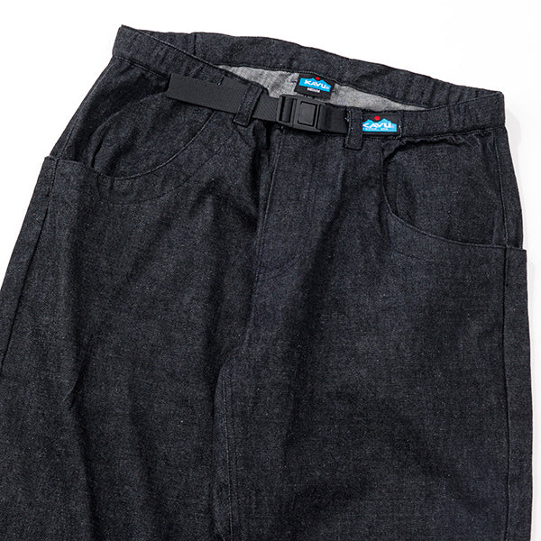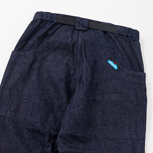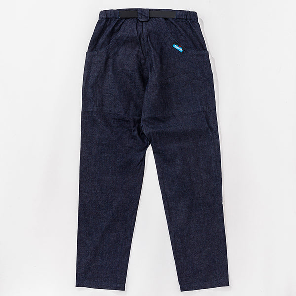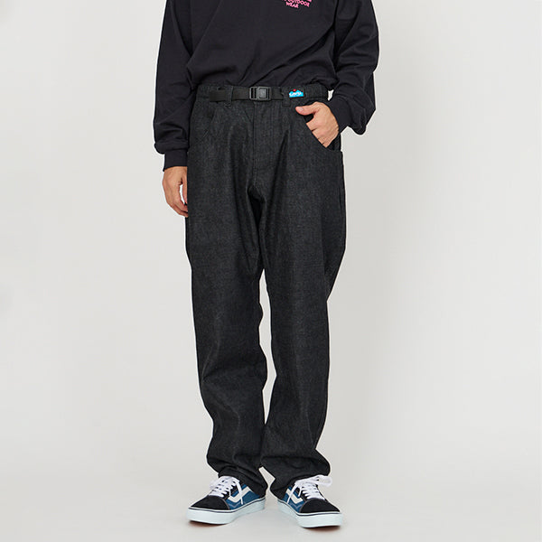定番のチリワックパンツをデニム素材でお届けします。ウエスト部分に付いたウェビングベルトは、片手で素早くサイズ調整が可能。タフで耐久性の高いデニムを採用で、岩場や焚き火といったアウトドアシーンでも気兼ねなく穿くことができ、使い込むほどに風合いが増していきます。ゆったりとしたワイドなシルエットは、どんな動きも妨げないリラックスした穿き心地で、股下にはガゼットクロッチが施されており、激しい動きにも対応します。大きくデザインされたバックポケットはスマートフォンなど日常の小物をスムーズに出し入れできる設計です。ジャパンフィット(日本向けのサイズ)ですのでサイズ選びの参考にしてみてください。