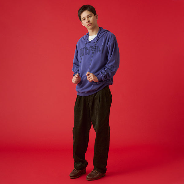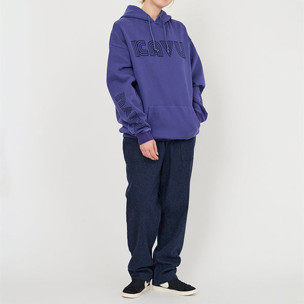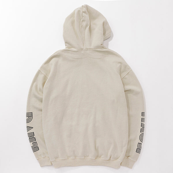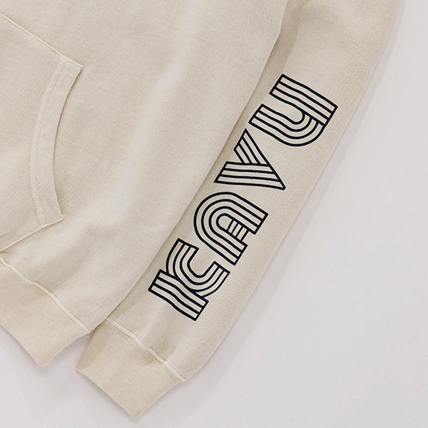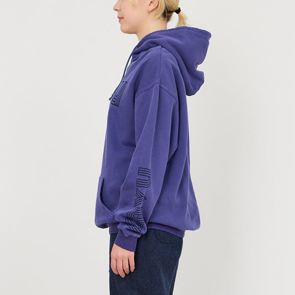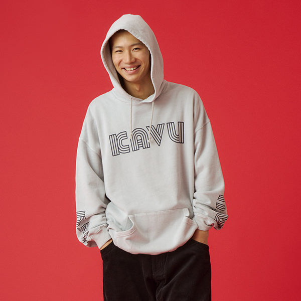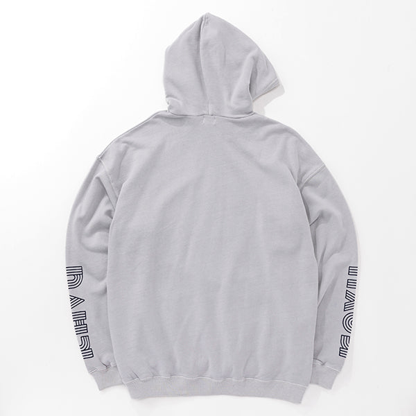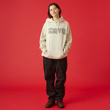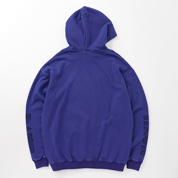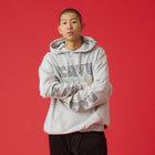 個性的なグラフィックが際立つプルオーバーフーディー。フロントの立体的なロゴと、袖に大胆にプリントされたねじれたようなタイポグラフィがデザインのポイントです。しっかりとした生地感でフードの立ちも良く、1枚でスタイリングの主役になります。ストリートファッションはもちろん、きれいめなアウターと合わせたミックススタイルにもおすすめ。着心地の良さとデザイン性を両立させた、こだわりのアイテムです。ジャパンフィット(日本向けのサイズ)ですのでサイズ選びの参考にしてみてください。