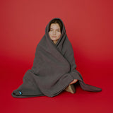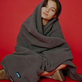 POLARTEC社のフリースを採用。中肉で軽量、柔らかで滑らかな質感が特長で、保温性と通気性に優れた高機能。車に常備するブランケットとして、ベビーカーの保温用、飛行機で肌寒い時なと、軽量なフリースブランケットは1枚あるととても便利なアイテムです。