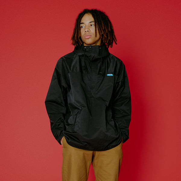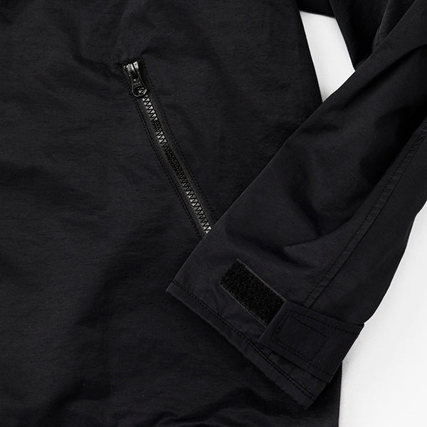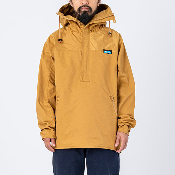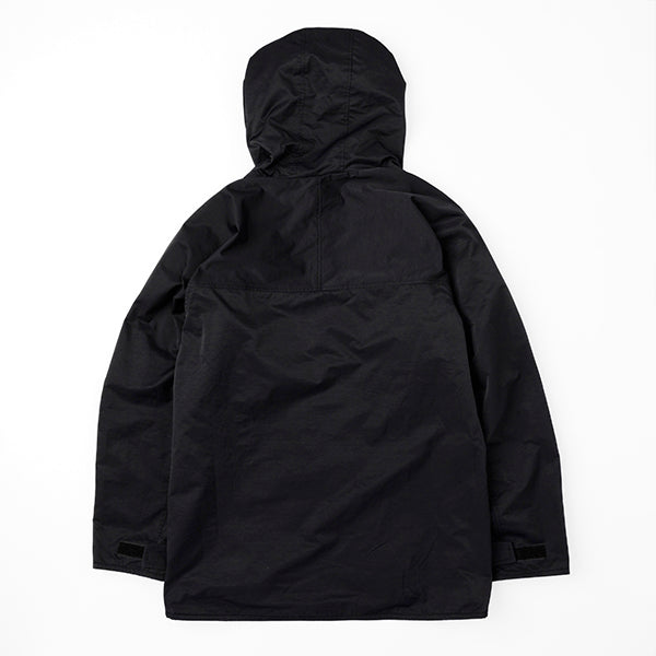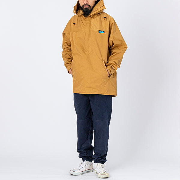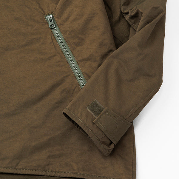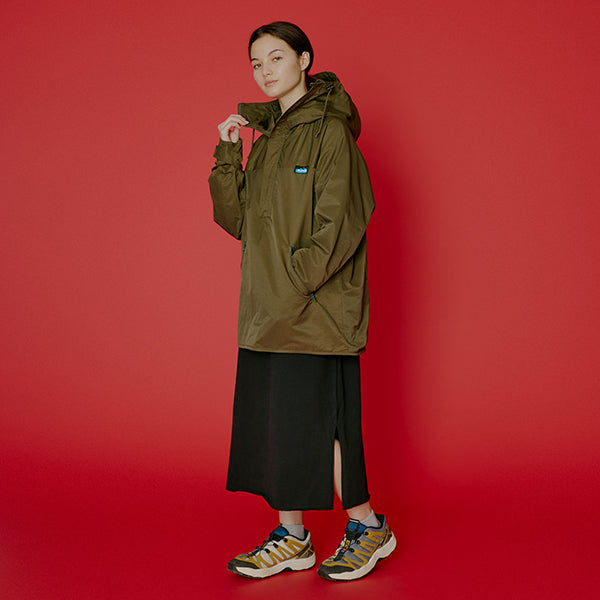 アウトドアミックスをライフスタイルに気軽に取り入れることのできるアノラックは、ひとつ持っていると使えるアイテム。フードと少し首部分が高くで残されているので冷気を取り込まず、温まった空気を外に出しにくい特徴があります。首元からフロントには大きく開きますので着脱も簡単です。フロントはポケット付き。キャンプではもちろん、タウンユースにも便利な1枚です。