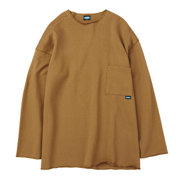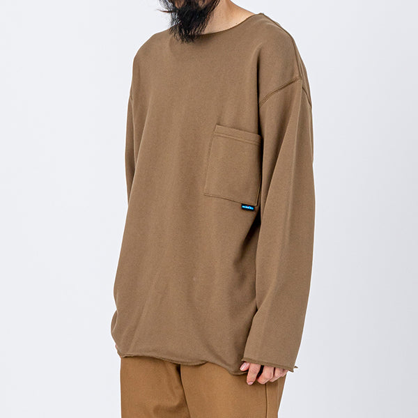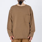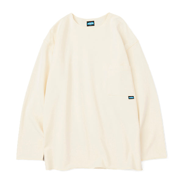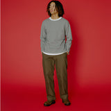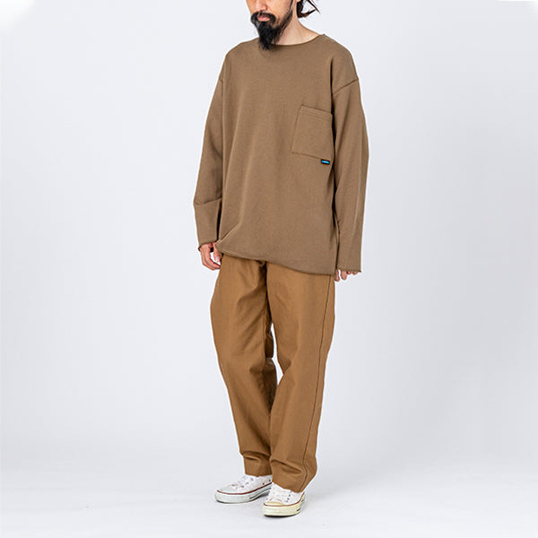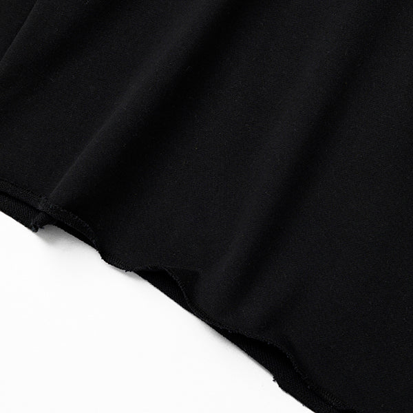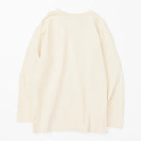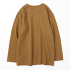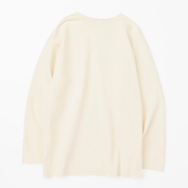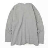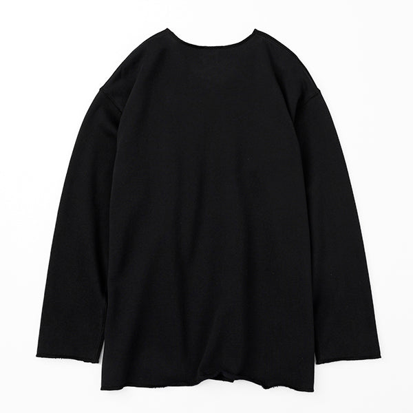 少し厚みのあるコットン素材で、ボディラインを拾いにくいのが嬉しいカットソー。シンプルなデザインながら、袖口や裾は切りっぱなしになっていて、ニュアンスのあるスタイルです。ゆったりしたシルエットですが、落ち着いた素材感ですので、スラックスに合わせればきれいめにも、ワイドパンツに合わせてカジュアルにもコーディネートしていただけます。