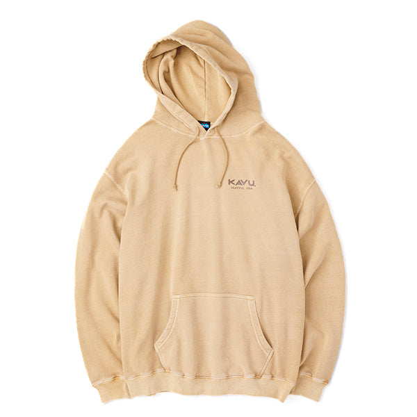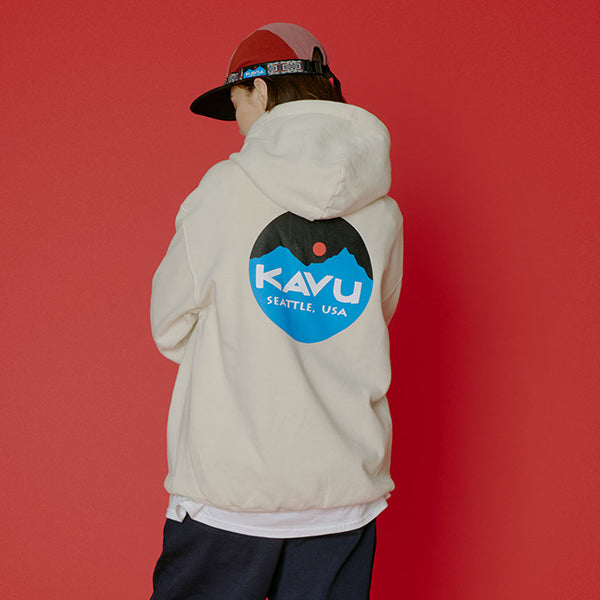フロントはシンプルなレターロゴ、背面にはKAVUの定番マウンテンロゴをプリントしました。パーカのベースはシンプルな3色展開で、どんなボトムともコーディネートしやすいのがうれしいところ。優しい肌触りで、外出からご自宅でのリラックスタイムにも最適な1枚です。