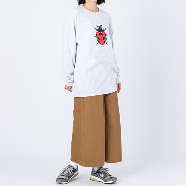 素朴なテントウムシの描かれたロンTEE。幸運のシンボルや、太陽のイメージがあると言われているテントウムシをシンプルにプリントしています。ジャパンフィット(日本向けのサイズ)ですのでサイズ選びの参考にしてみてください。