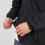 ストレッチ性を備えたこのパーカーは、通気性がありながら防風性が高く、トレイル ランニング、バックカントリーツーリング、風の強いビーチでの散歩に最適なアウターレイヤーです。使用しないときは丸めてジャケットの襟に収納できるフード、必需品を収納できるジッパー付きポケットが特徴です。ジッパー付き胸ポケットをスタッフサックとして使用できるので、小さくまとめて収納するのにも便利です。