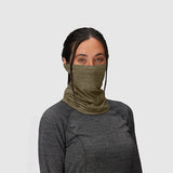 メリノウール混紡で、通気性、吸湿発散性、天然の防臭性などのメリットがあります。UPF 30で紫外線を防止し、大変薄手なのでヘルメットやフードの下に快適に収まり、かさばることなく通気性のある暖かさです。