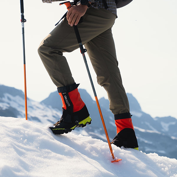 積雪の少ない残雪期の山行に向けたミッドレングス丈のクロッグゲイターが登場。昨今の細めのブーツによりフィットするスリムなデザインとGORE-TEX®テクノロジーを採用。クロージャ―(開閉用の縦に長いベルクロ部分)のデザインを正面からずらすことで足首前面の嵩張りを軽減させ可動域が広がりました。交換可能なシューズ側に回すストラップにデザインを変更したことで、フィールドで壊れてしまっても簡単に修理することができるようになりました。