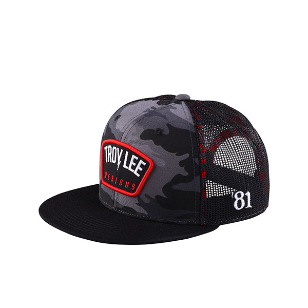 トロイリーデザインズ トラッカー スナップバック ボルトパッチ ブラックカモ