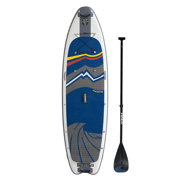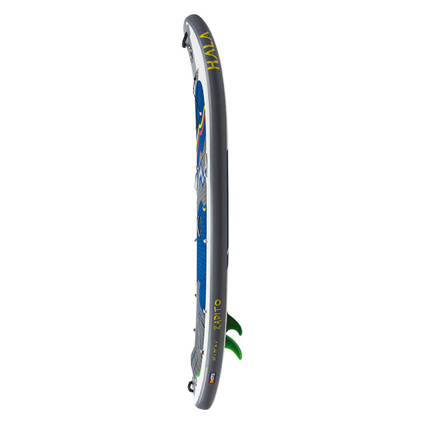 HALA ハラ ラディト パドル付きはホワイトウォーターでもフラットウォーターでも同じように快適に過ごせる高性能ボードを求める小柄なパドラーに最適なボードです。ラディトは、プログレッシブSUPロッカー・プロファイルやハラの特許取得済み収納式ストンプボックス2フィン・システムなどのリバー機能と、長いウォーターラインを融合させ、急流やフラットウォーターでのスピードを維持します。