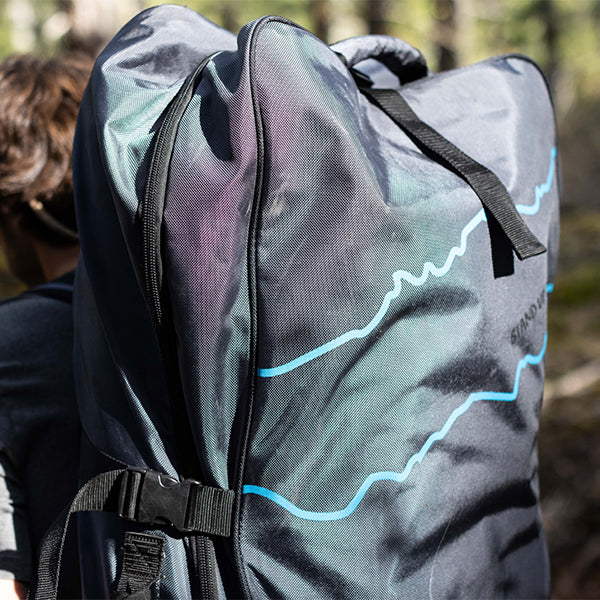 カーボンBラインパドル付属(カーボンシャフト+プラスチックブレード)、バックカントリーローリングバックパック、フィン、ハンドポンプが付属しています。